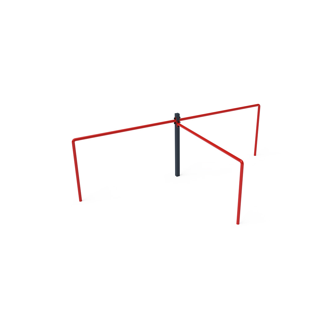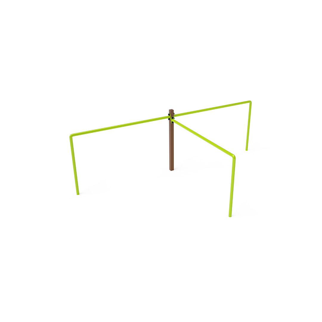 Die wartungsfreie Dreifach-Balance-Bar ist ein Spielgerät, mit dem Kinder Kraft, Fitness und Beweglichkeit trainieren können. Sie besteht aus feuerverzinktem Stahl mit Pulverbeschichtung. Die Verbindungsstücke sind aus Edelstahl und durch Kappen geschützt, um Langlebigkeit und Sicherheit zu gewährleisten. Eine Rasenfläche kann als Landefläche genutzt werden, wir empfehlen jedoch die Verwendung einer Rasenmatte.
