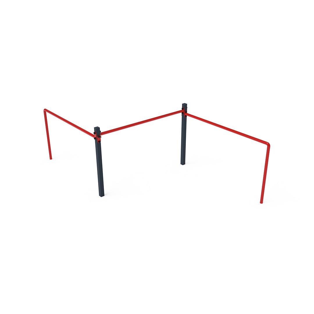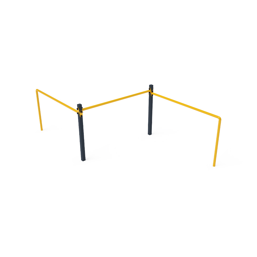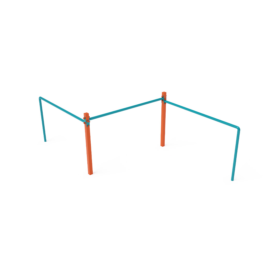 Die wartungsfreie Dreifach-Balance-Bar ist ein Spielgerät, mit dem Kinder Kraft, Fitness und Beweglichkeit trainieren können. Jede Stange hat eine andere Höhe, sodass sowohl ältere als auch jüngere Kinder spielen können. Sie besteht aus feuerverzinktem Stahl mit Pulverbeschichtung. Die Verbindungsstücke sind aus Edelstahl und durch Kappen geschützt, um ihre Langlebigkeit und Sicherheit zu erhöhen. Eine Rasenfläche kann als Landefläche genutzt werden, wir empfehlen jedoch die Verwendung einer Rasenmatte.
