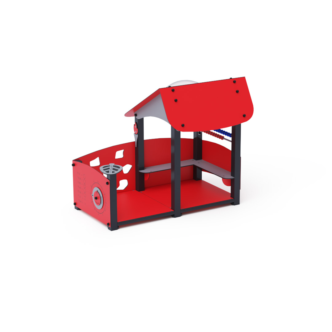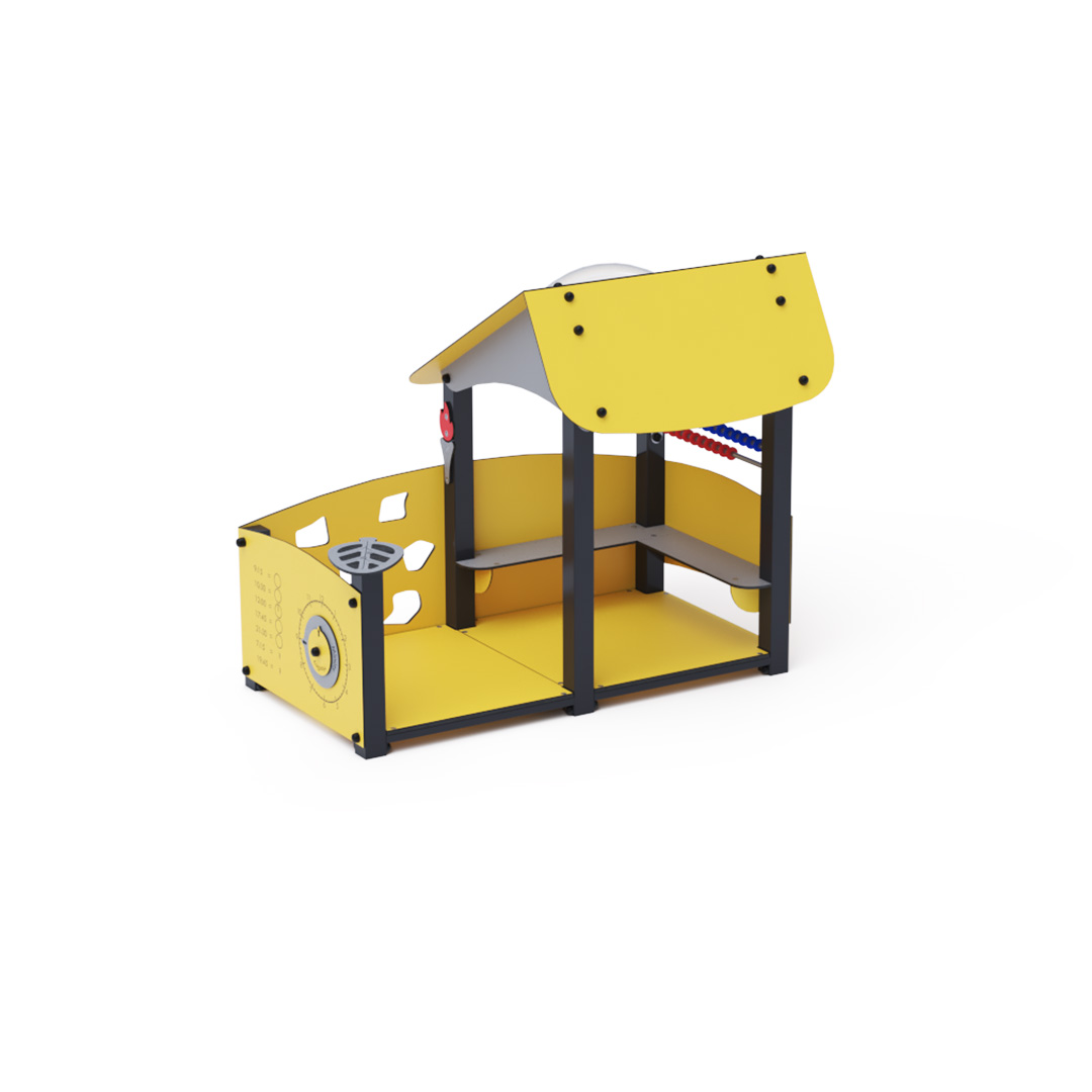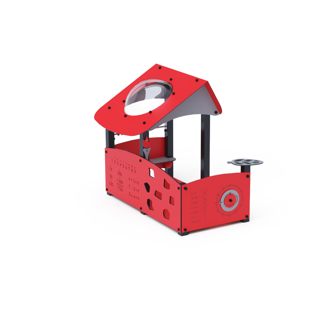 Ein Lernhaus voller Spaß, das Kindern nicht nur Neues beibringt, sondern sie auch unterhält. Das Haus mit seinem schrägen Dach ist mit Lerntafeln mit Zahlen und einer Uhr, einer Mini-Kletterwand und einem kleinen Abakus ausgestattet.