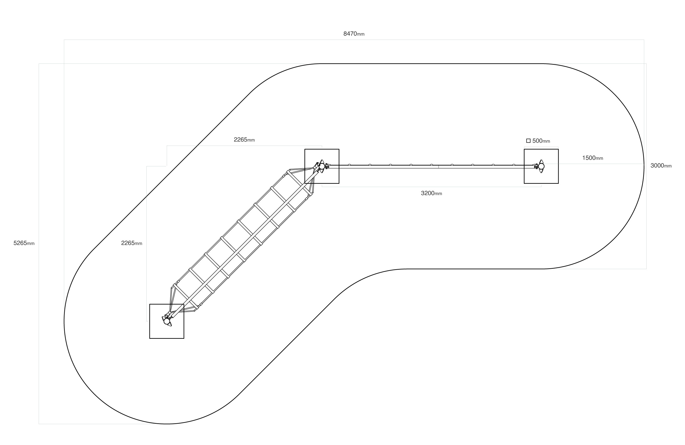 Material: Feuerverzinkter Stahl, Polyesterseile, Edelstahlbefestigungen