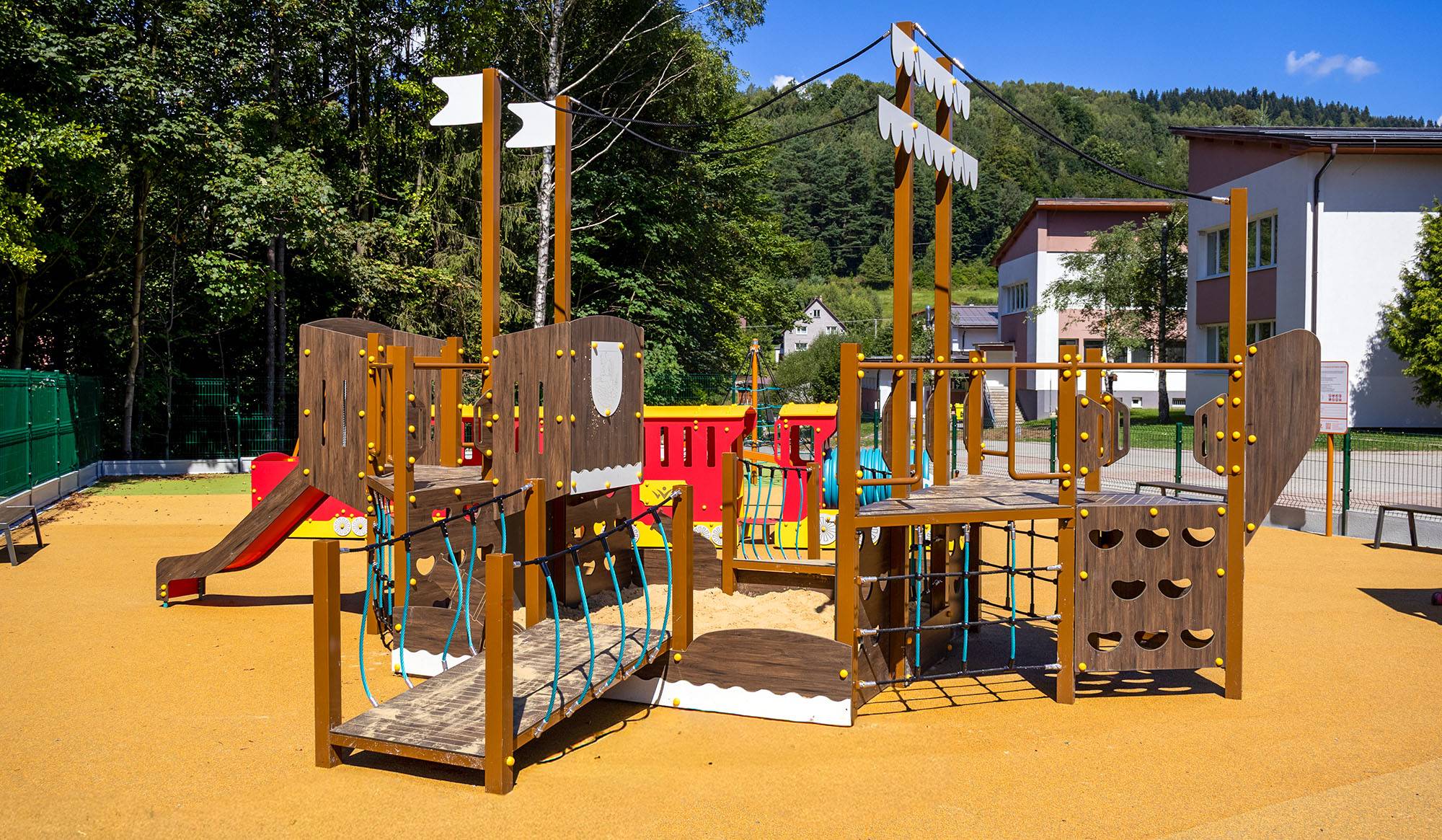 Das Dorf Skalité kann sich eines brandneuen Kinderspielplatzes rühmen, den wir mit Freude realisiert haben. Unser Ziel war es, einen modernen, sicheren und attraktiven Ort zu schaffen, an dem Kinder ihren Lieblingsbeschäftigungen nachgehen können und Eltern sicher sein können, dass ihre Kleinen in einer sicheren Umgebung spielen. Der Spielplatz bietet vielfältige Spielmöglichkeiten, die Bewegung, Fantasie und gemeinsames Spielen fördern: Das Herzstück des Spielplatzes ist ein großer Turm – Kinder können hoch hinaufklettern, über die Stege zum Hauptturm gelangen und die Mutigeren können die Rutsche hinuntersausen, was für einen ordentlichen Adrenalinkick sorgt. Für die Kleinsten gibt es eine Wippschaukel, eine Prinzessinnenkutsche mit Einhörnern, ein Polizeiauto, einen Traktor mit Anhänger oder eine Lokomotive mit Waggons – diese Elemente regen die Fantasie an und laden zum Spielen als Prinzessinnen und Prinzen, Polizisten, Bauern oder kleine Reisende ein. Zu den beliebten Elementen gehört auch ein lustiges Schiff mit Sandkasten, das kleine Seefahrer zu einer abenteuerlichen Reise einlädt. Kinder können hier Sandburgen bauen und sich vorstellen, sie würden mit ihrem eigenen Boot über den Ozean segeln. Jeder Spielplatz bietet klassische Schaukeln, die Jung und Alt gleichermaßen begeistern. Für alle, die gerne Gleichgewicht und Kraft testen, gibt es eine Seilpyramide, ideal zum Klettern und Toben. Aktive Entspannung bietet ein originelles Karussell, das die Kinder im Kreis herumwirbelt. Der pädagogische Bereich des Spielplatzes besteht aus interaktiven Elementen – Tic-Tac-Toe, einer großen Zeichentafel, einem Abakus, dem Alphabet und Zahlen –, die Kreativität und logisches Denken fördern. Natürlich haben wir auch an die Erwachsenen gedacht. In der Nähe der einzelnen Spielelemente stehen Bänke, auf denen Eltern entspannen können, während ihre Kinder die Welt der Spiele entdecken. Wir freuen uns sehr, Teil dieses schönen Projekts gewesen zu sein, und wir sind überzeugt, dass der Spielplatz ein Ort wird, an den Kinder immer wieder gerne zurückkehren.