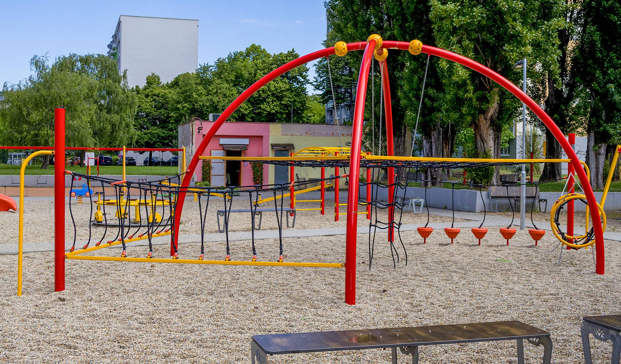 Einer der größten Spielplätze in Bratislava, Ružiny, hat sich komplett verändert. Er wurde renoviert und bietet nun Bereiche für die Jüngsten, ältere Kinder und auch einen Bereich für Erwachsene.