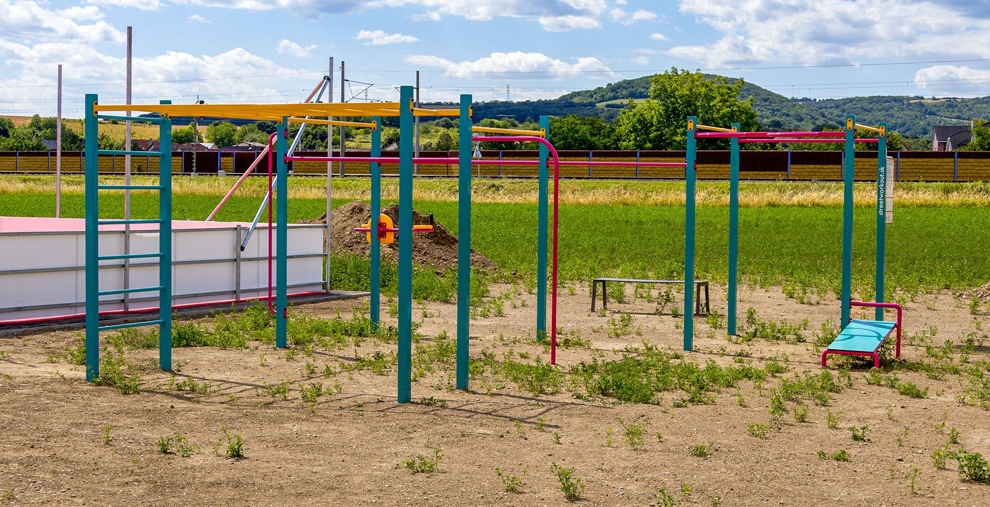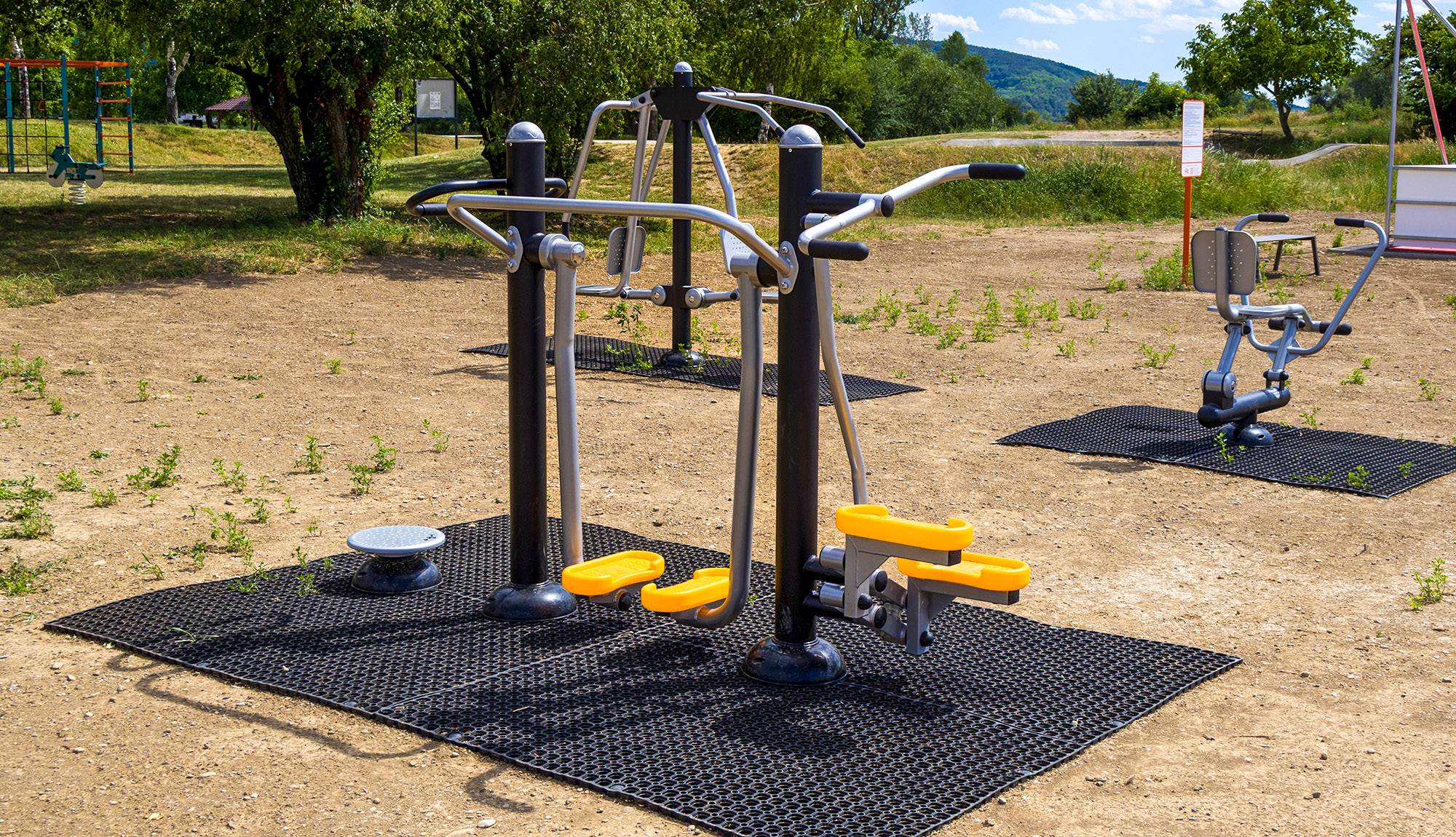 Der Spielplatz in Ivanovce wurde um moderne und komplexe Fitnessgeräte erweitert, die die körperlichen Fähigkeiten von Kindern und Jugendlichen fördern.