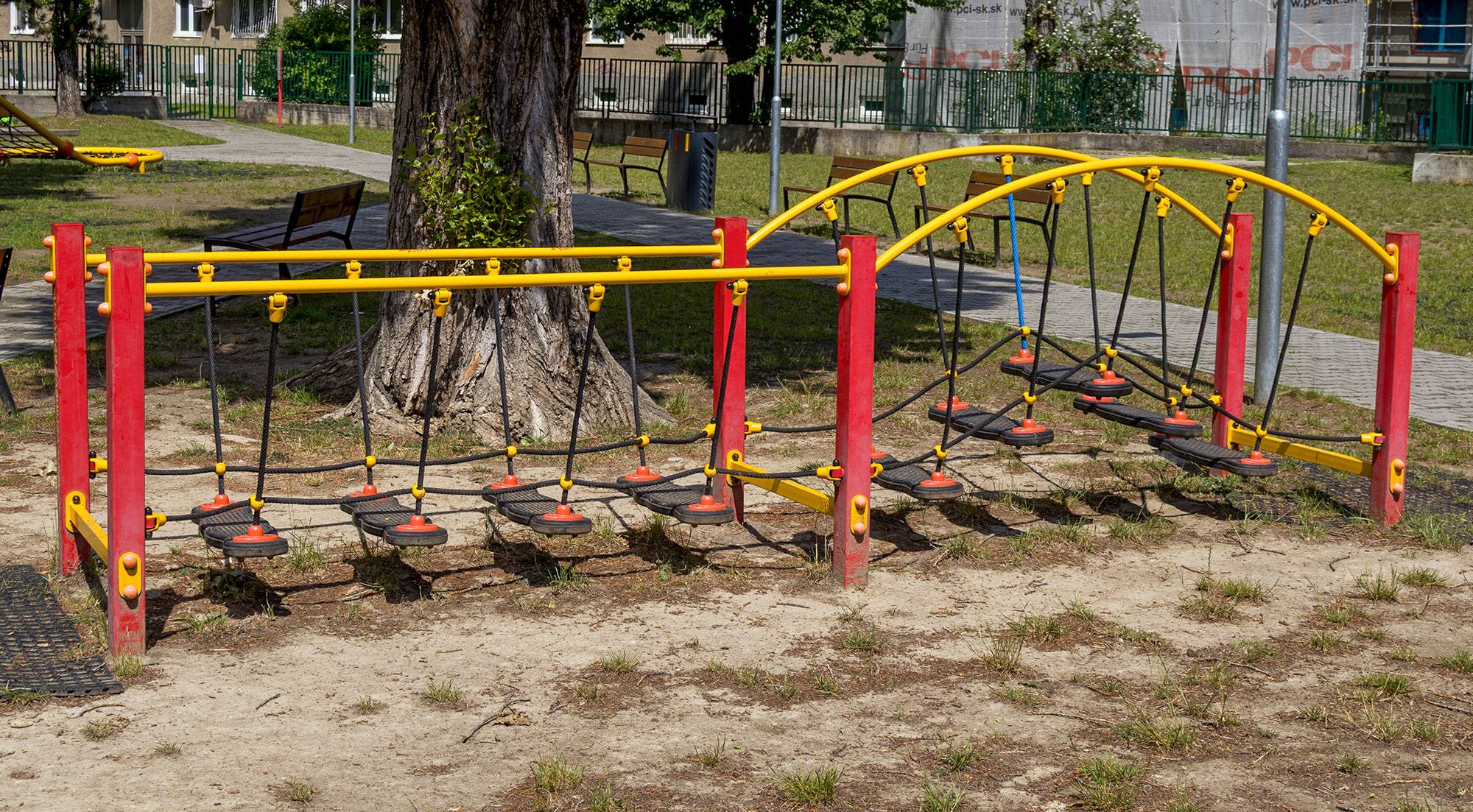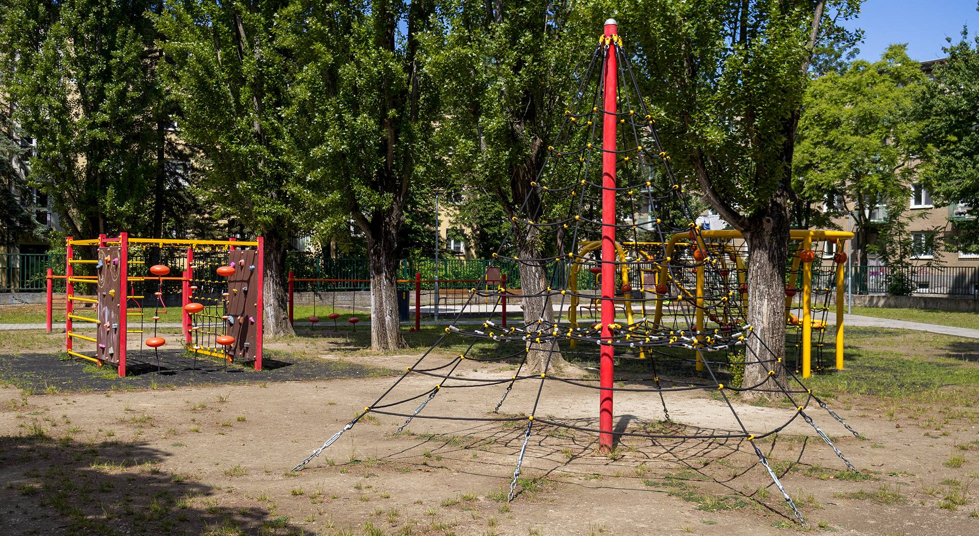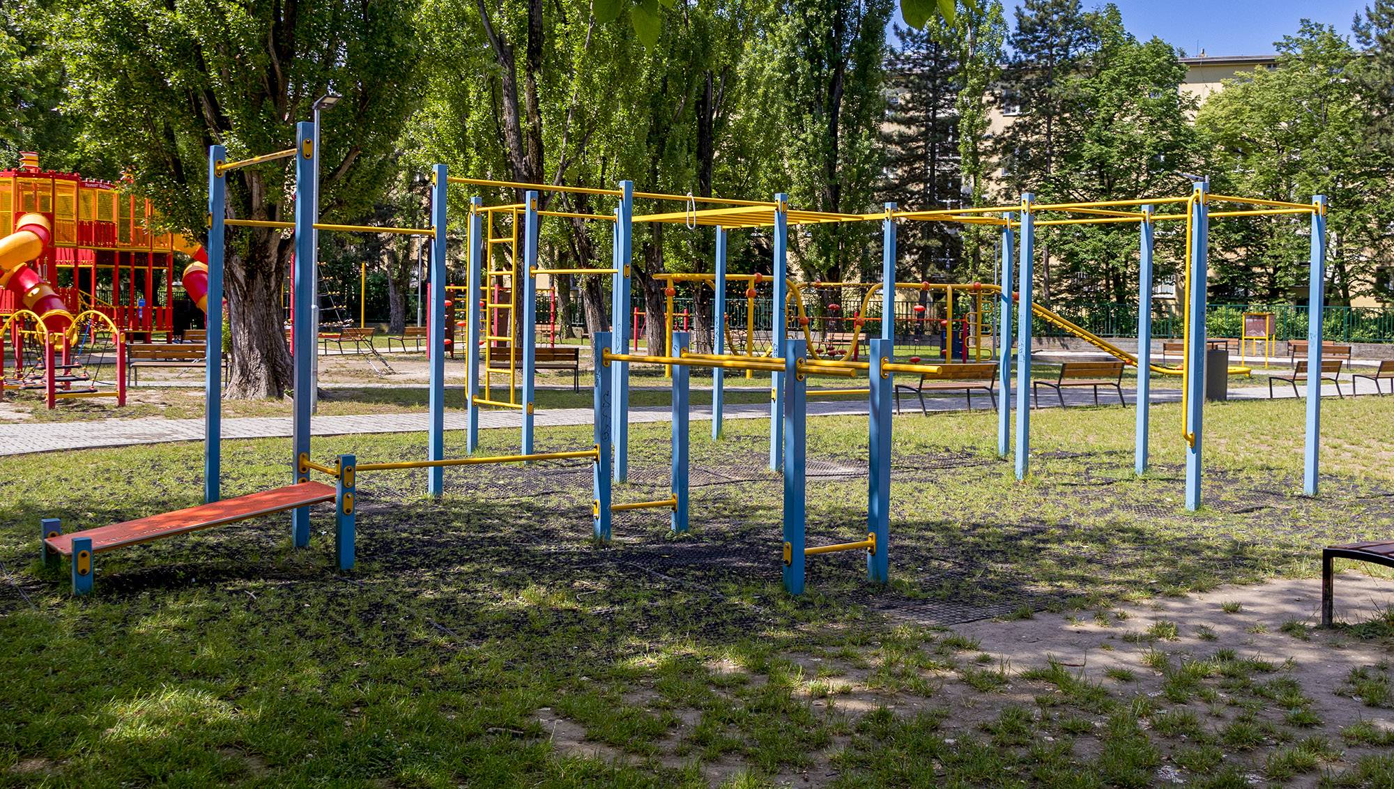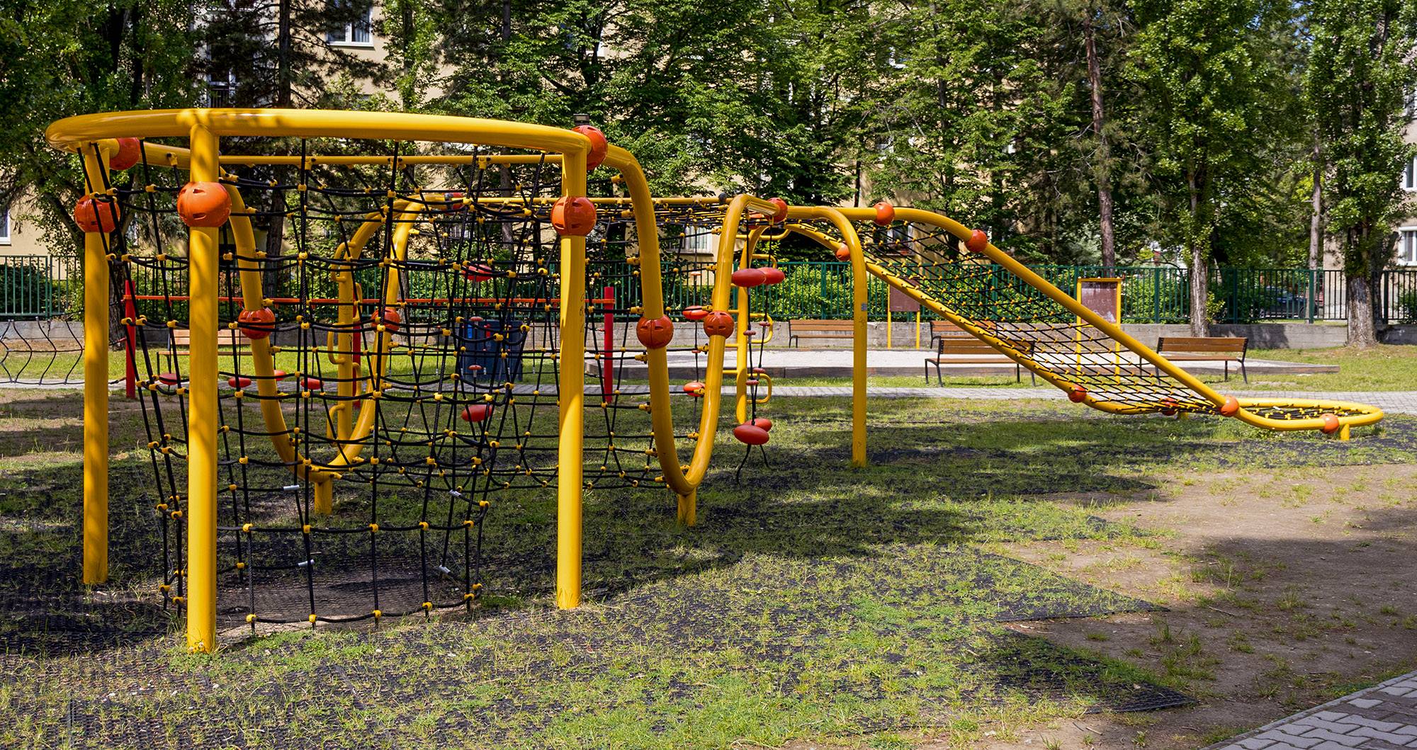 Alle Elemente sind sicher, modern und entsprechen den neuesten Standards. Die beiden Hauptattraktionen sind die Ružinov-Festung – die größte Burg in Ružinov mit zwei Rutschen und zwei Rodeln – und die größte Seilkletterwand in Bratislava und vielleicht sogar in der ganzen Slowakei, die speziell für uns angefertigt wurde.