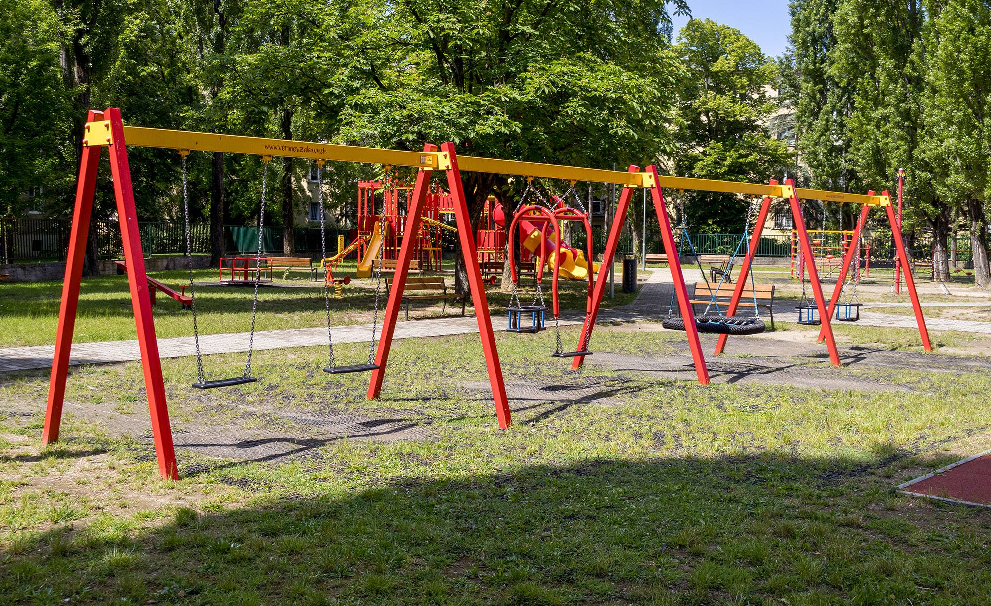 Der ursprüngliche Spielplatz in der Medzilaborecká-Straße in Bratislava war fast 30 Jahre lang baufällig und musste komplett abgerissen werden, inklusive hunderter Meter verwittertem Asphalt. An seiner Stelle wurden Rasenflächen und wasserdurchlässige Oberflächen angelegt.