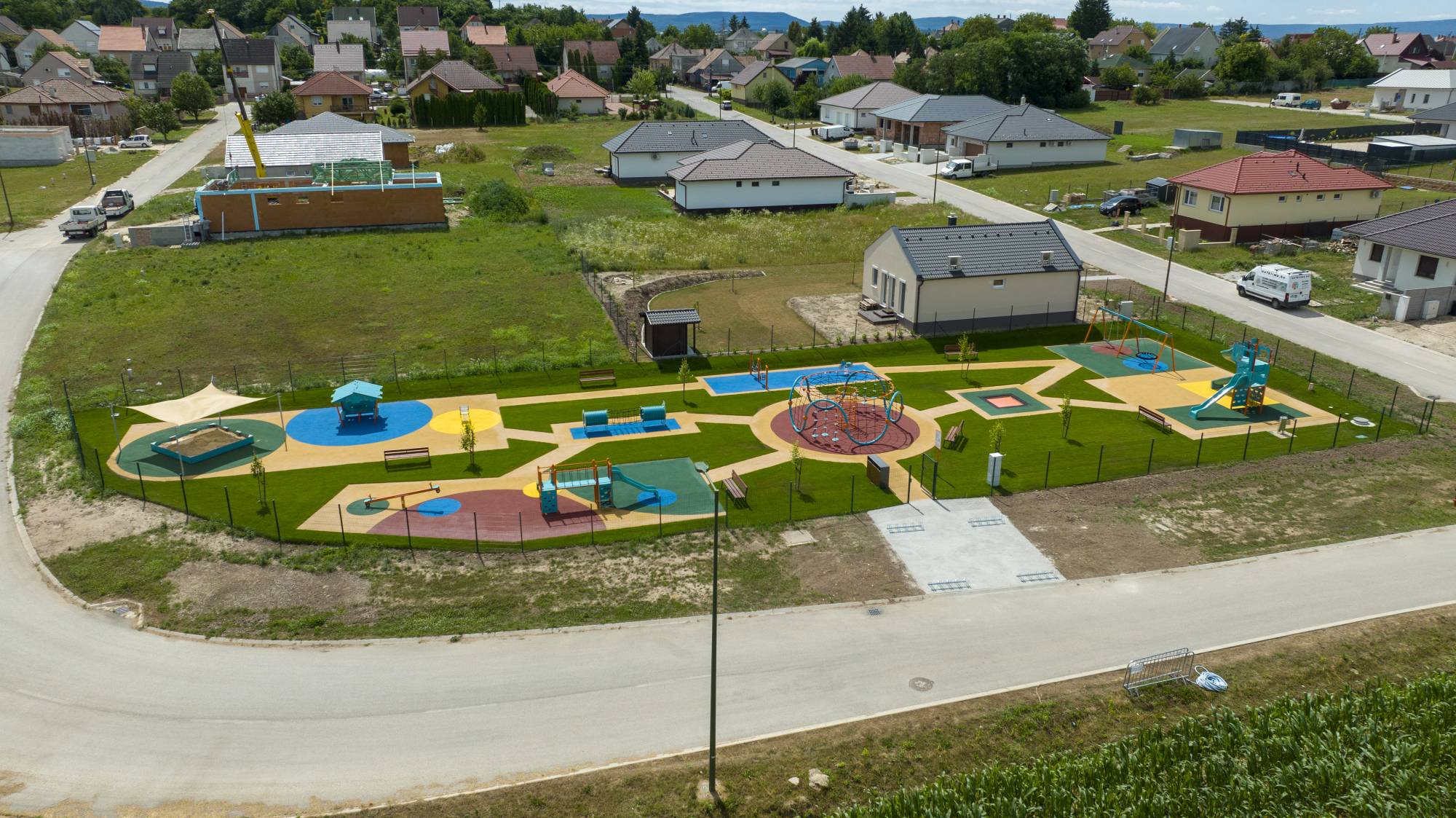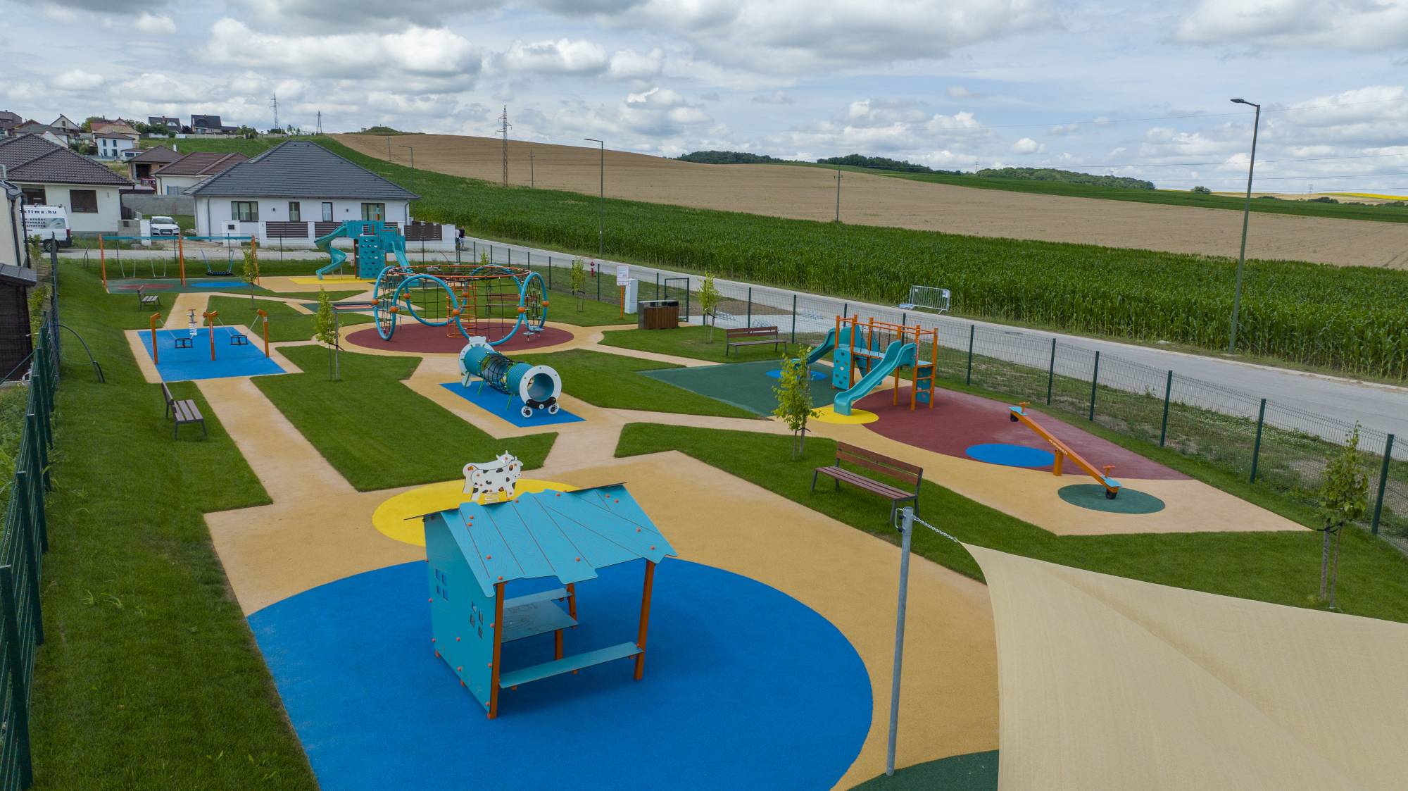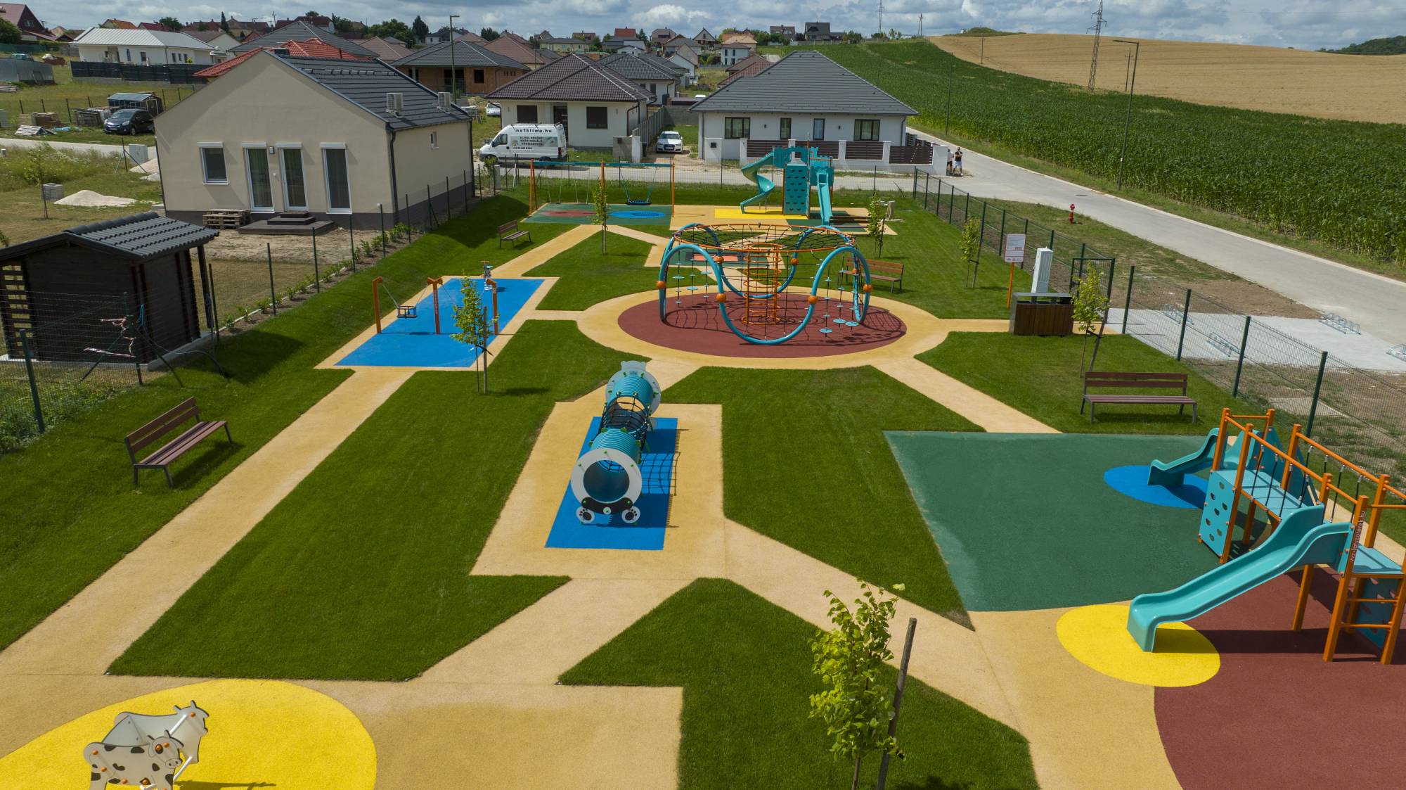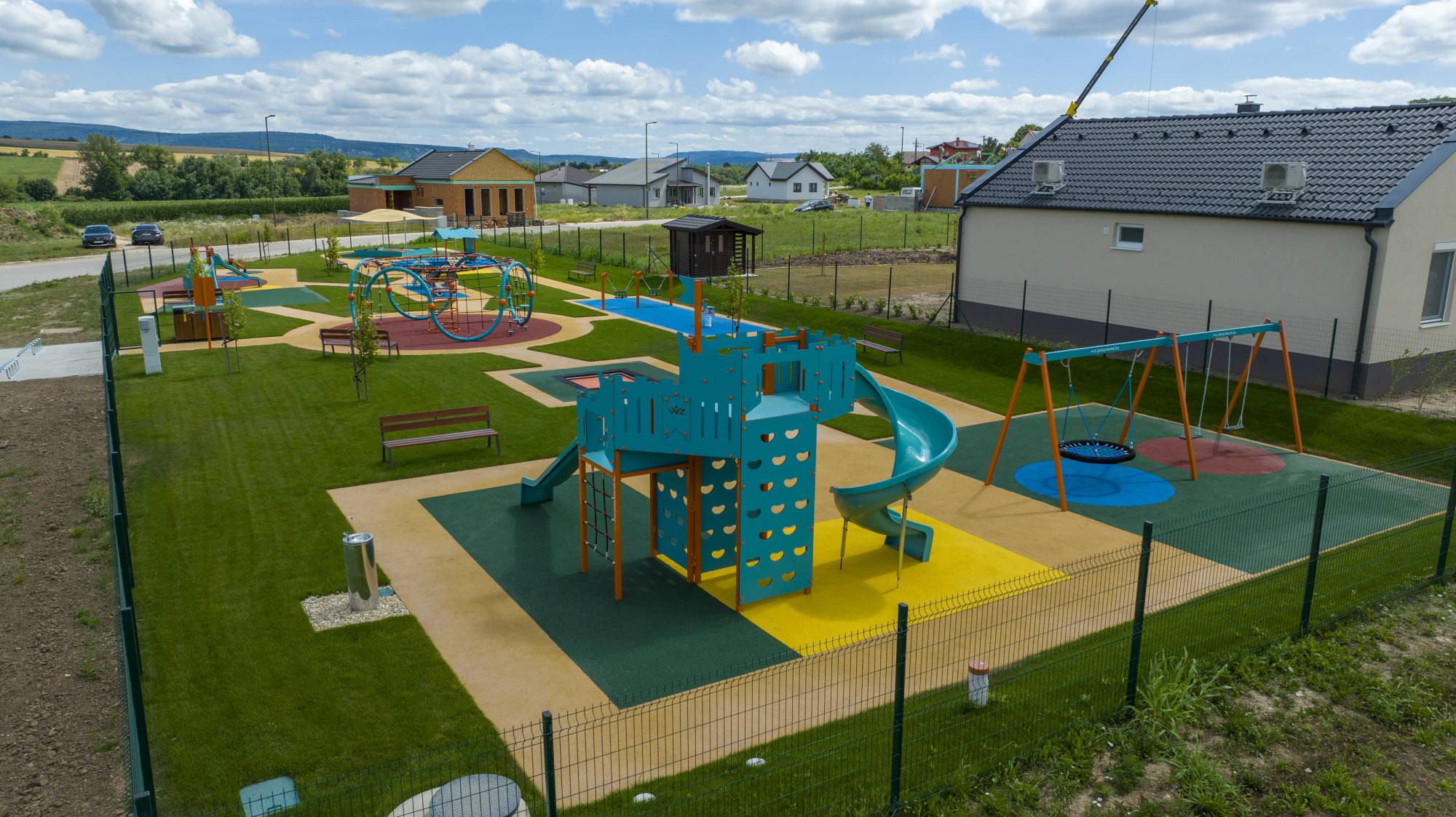 Im Wohnpark Bajcsy im Dorf Környe wurde ein moderner Spielplatz errichtet. Die große Spielfläche bietet verschiedene Elemente wie ein Trampolin, eine Schaukel, eine Wippe, einen Sandkasten, einen Tunnel und Seilelemente.