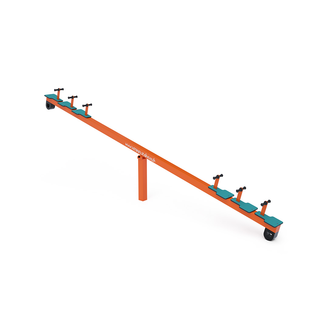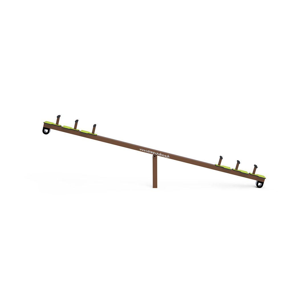 bietet sechs Sitze für noch mehr Spaß. Bei der Auswahl der Elemente für einen Kinderspielplatz sollte auch die Materialwahl eine wichtige Rolle spielen, da sie einen grundlegenden Einfluss auf die Lebensdauer des Spielplatzes hat. Deshalb legen wir Wert auf hochwertige Materialien, sorgfältige Montage und die Einhaltung aller geltenden Normen.