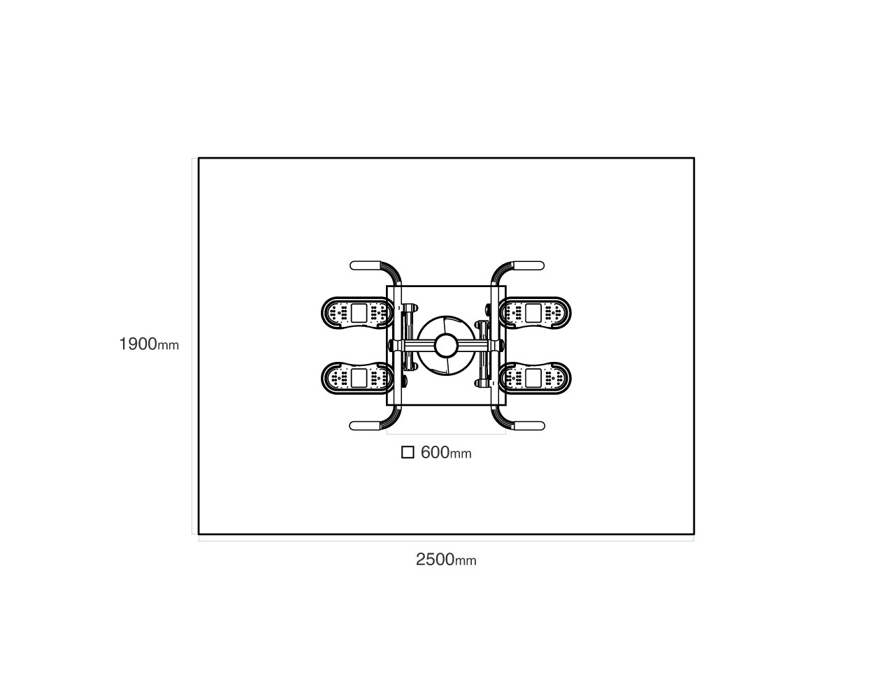 Sicherheitsbereich: 1,9 × 2,5 m