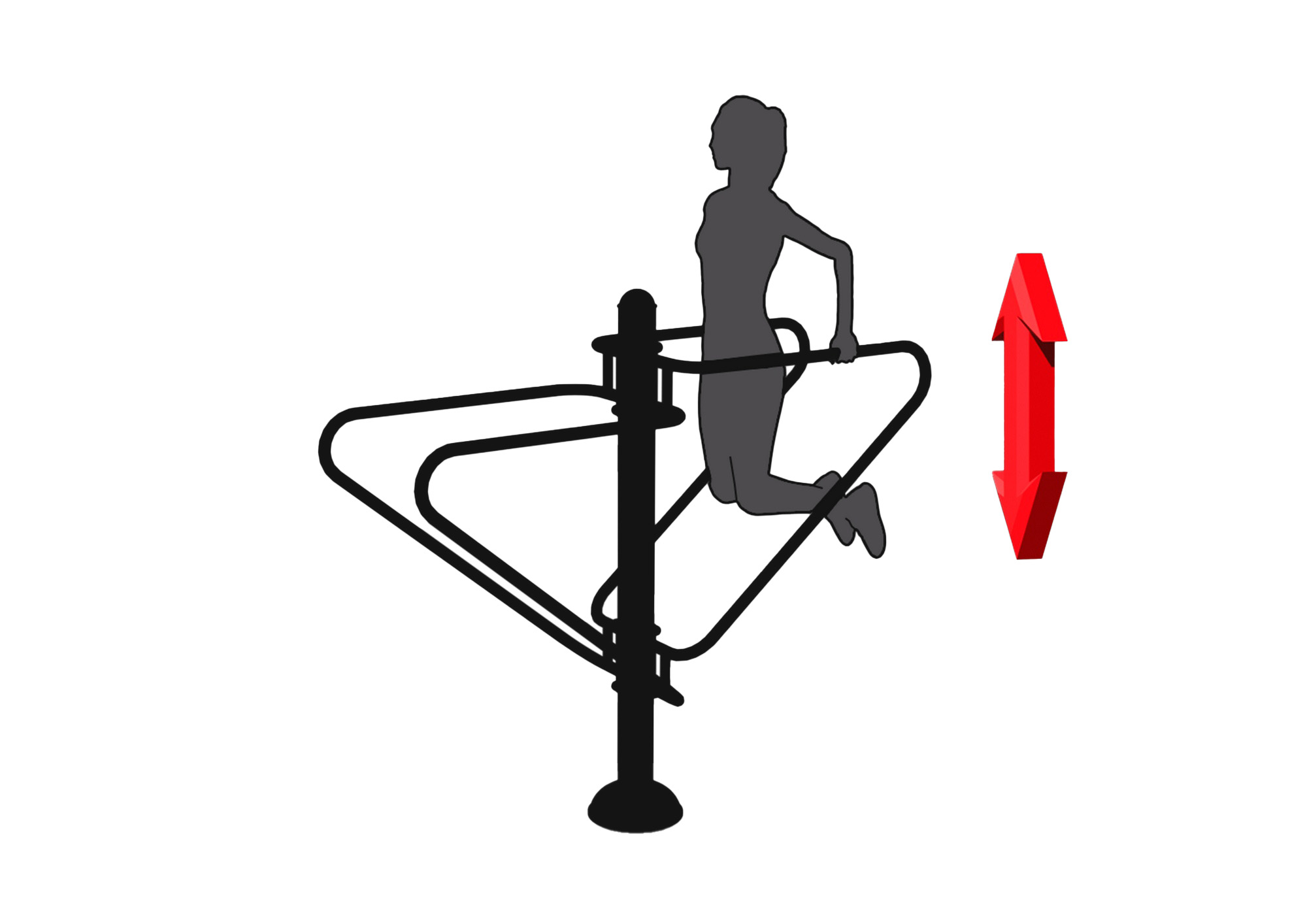Barren – Dieses Gerät ist für Übungen konzipiert, die primär den Oberkörper trainieren: Trizeps, Oberarmmuskulatur, Schultern und Brustmuskulatur. Das Training am Barren zielt hauptsächlich darauf ab, Kraft und Muskelmasse in den Zielmuskelgruppen zu steigern.