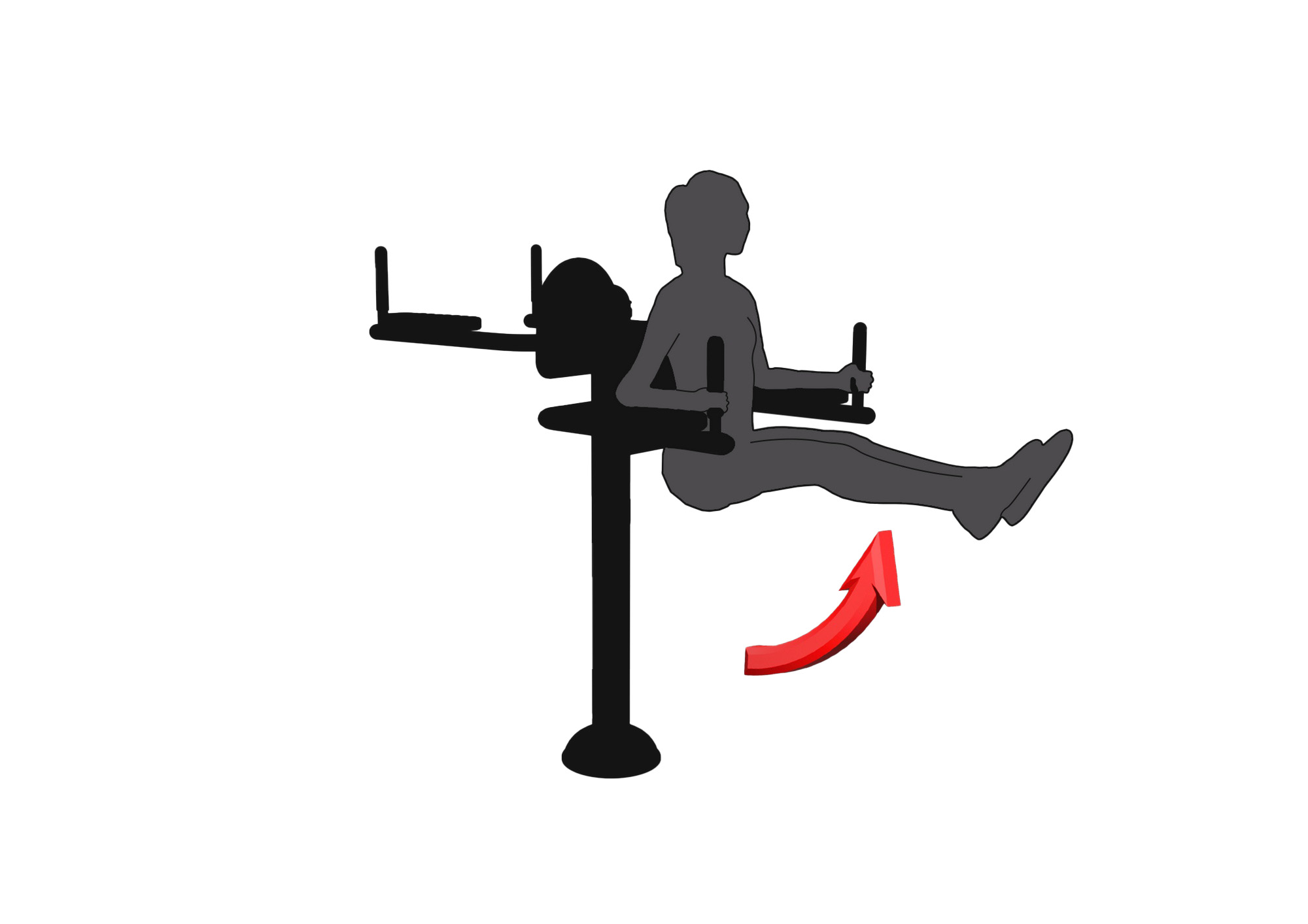 So wird das Training durchgeführt: Stellen Sie sich aufrecht hin, mit geradem Rücken, und lehnen Sie sich fest gegen das Brett. Umfassen Sie die Griffe fest, die Ellbogen ruhen auf den Stützen. Halten Sie die Beine gestreckt und heben Sie sie langsam an, bis sie senkrecht zu Ihrem Körper stehen. Atmen Sie beim Anheben der Beine ein und beim Absenken aus. Führen Sie die Bewegungen fließend und kontrolliert aus. Steigern Sie die Anzahl der Wiederholungen schrittweise, sobald sich Ihre Fitness verbessert.