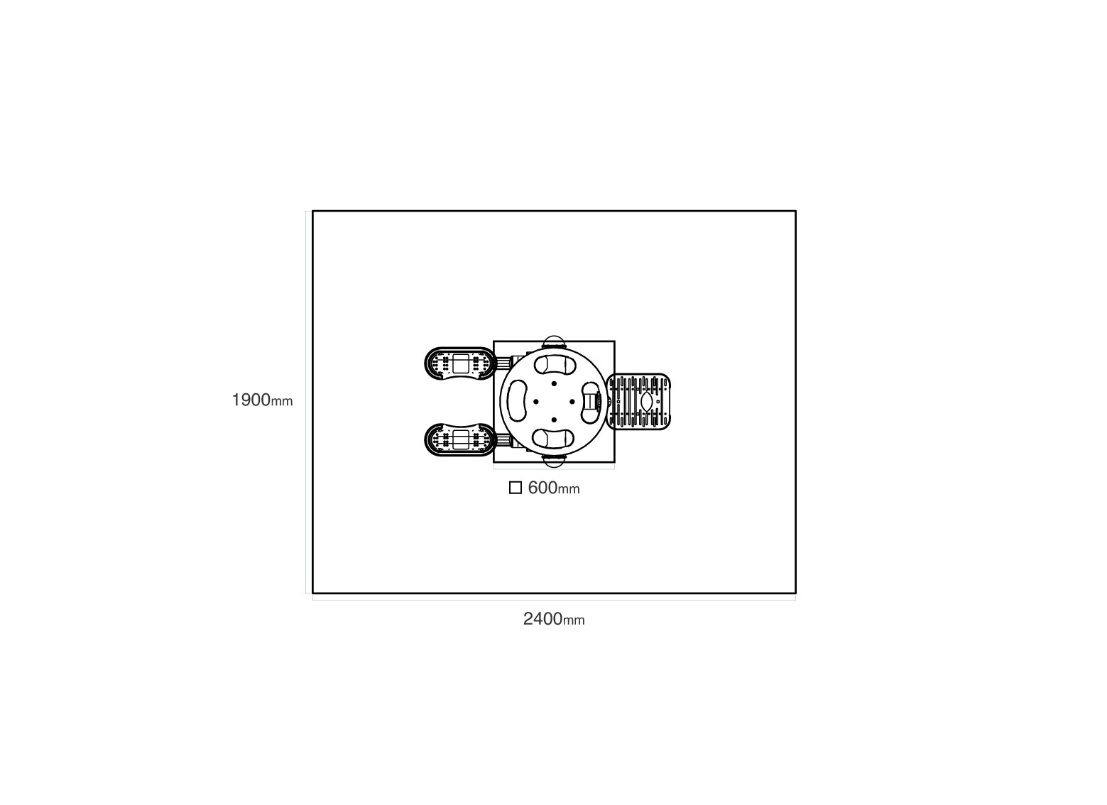 Sicherheitsbereich: 1,9 × 2,4 m