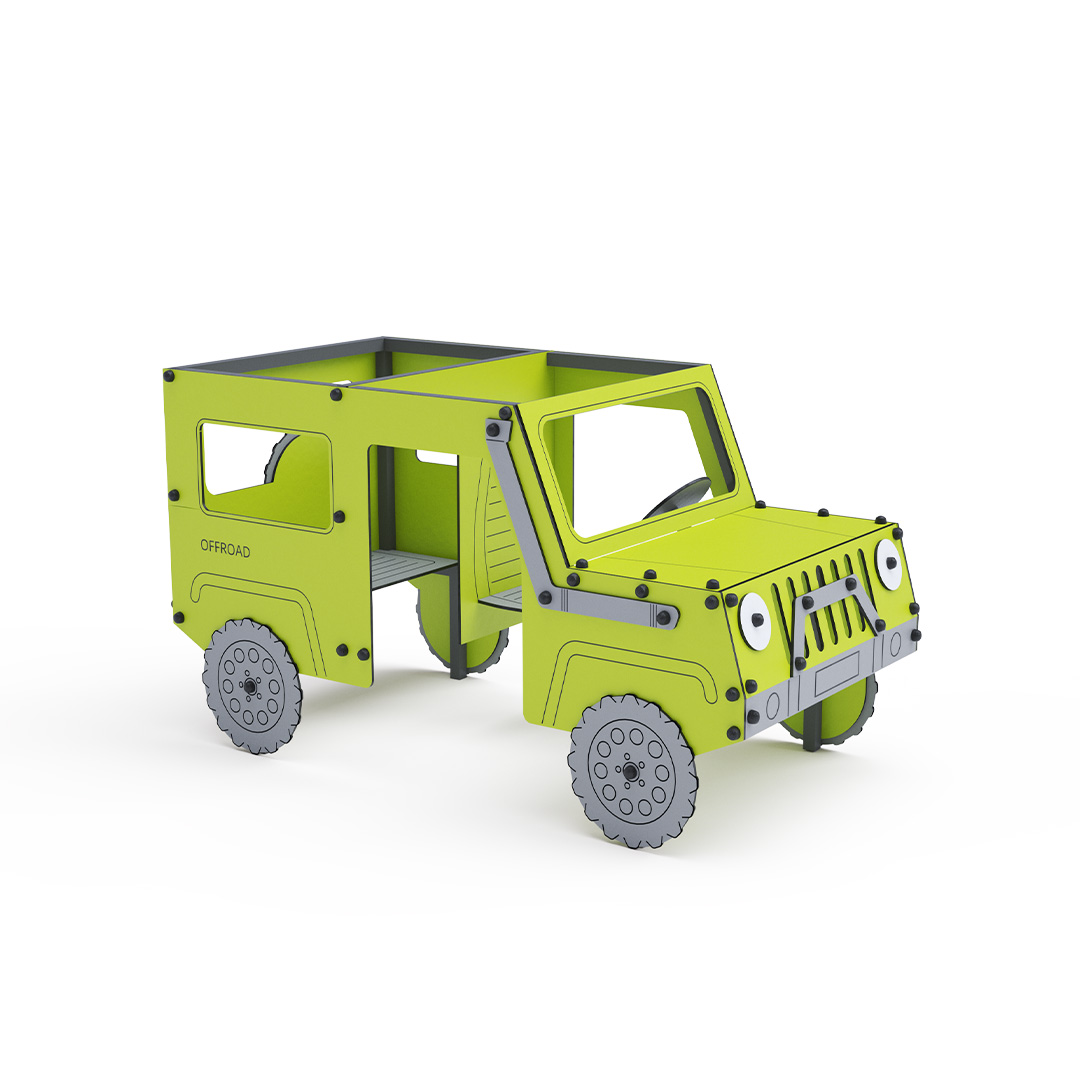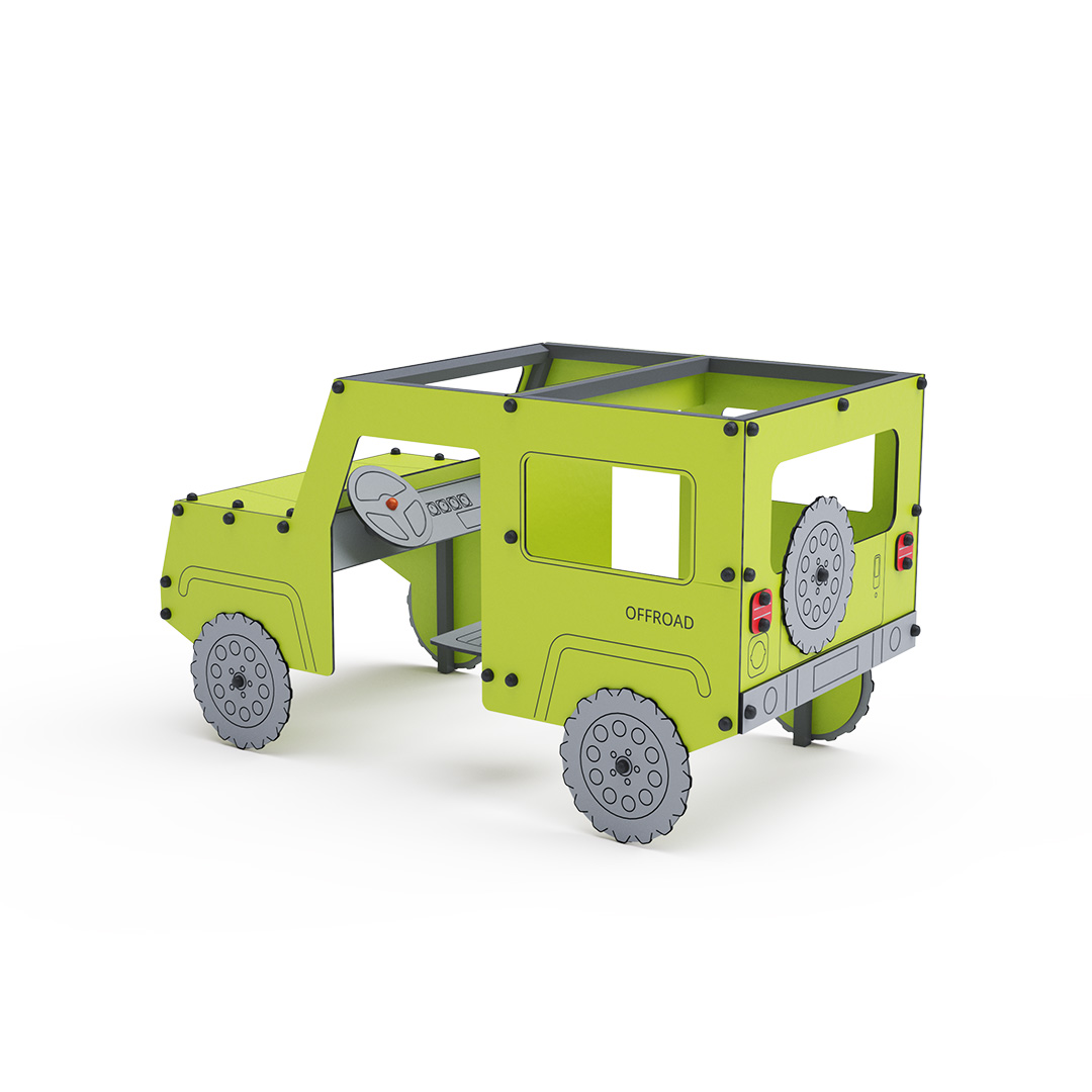 Das Fahrzeug – Jeep ist ein ideales Spielelement, um die Fantasie und Teamfähigkeit von Kindern zu fördern und eignet sich daher auch für die Jüngsten. Das drehbare Lenkrad und die thematischen Elemente verstärken das Spielgefühl. Die Stahlkonstruktion ist dank Feuerverzinkung und strapazierfähiger Pulverbeschichtung witterungsbeständig. Das verwendete HPL-Material ist chemikalienbeständig, UV-beständig, farbecht, ungiftig, recycelbar und bruchfest. Es besteht keine Verletzungsgefahr durch scharfe Kanten oder Splitter. Alle Verbindungen sind aus Edelstahl und mit Kunststoffkappen versehen, um Haltbarkeit und Sicherheit zu erhöhen.