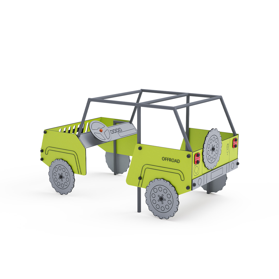 Das Fahrzeug – Jeep ist ein ideales Spielelement, um die Fantasie und Teamfähigkeit von Kindern zu fördern und eignet sich daher auch für die Jüngsten. Das drehbare Lenkrad und die thematischen Elemente verstärken das Spielgefühl. Die Stahlkonstruktion ist dank Feuerverzinkung und strapazierfähiger Pulverbeschichtung witterungsbeständig. Das verwendete HPL-Material ist chemikalienbeständig, UV-beständig, farbecht, ungiftig, recycelbar und bruchfest. Es besteht keine Verletzungsgefahr durch scharfe Kanten oder Splitter. Alle Verbindungen sind aus Edelstahl und mit Kunststoffkappen versehen, um Haltbarkeit und Sicherheit zu erhöhen.