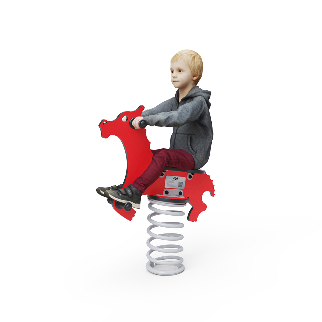 Die Materialien und die Konstruktion der Drachen-Federschaukel garantieren Langlebigkeit