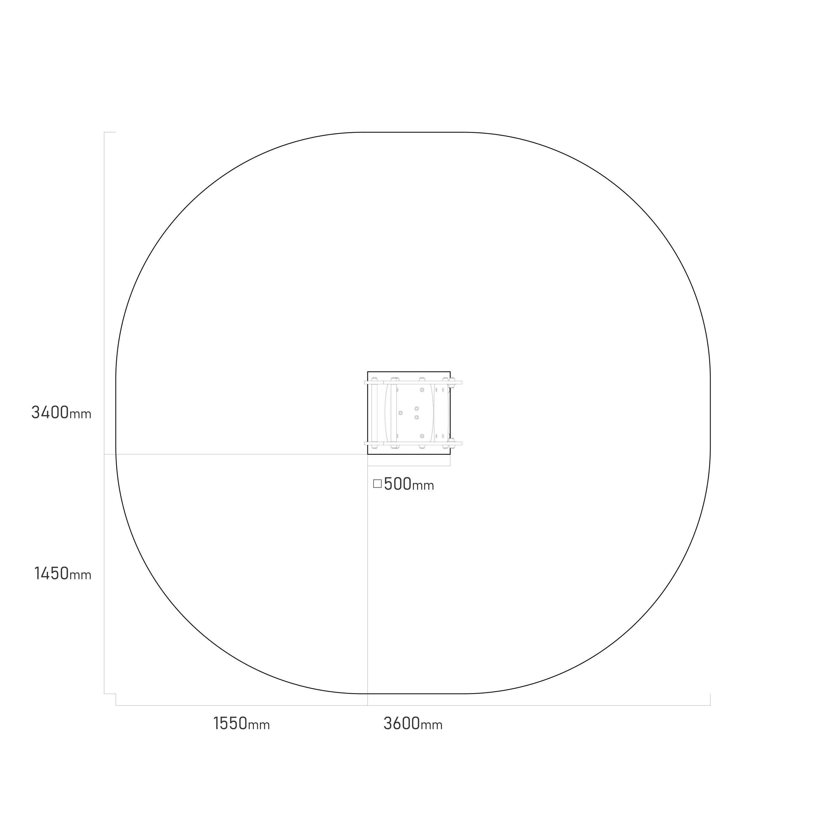 - Aufprallfläche: 3,6 x 3,4 m (gemäß EN 1176-1)