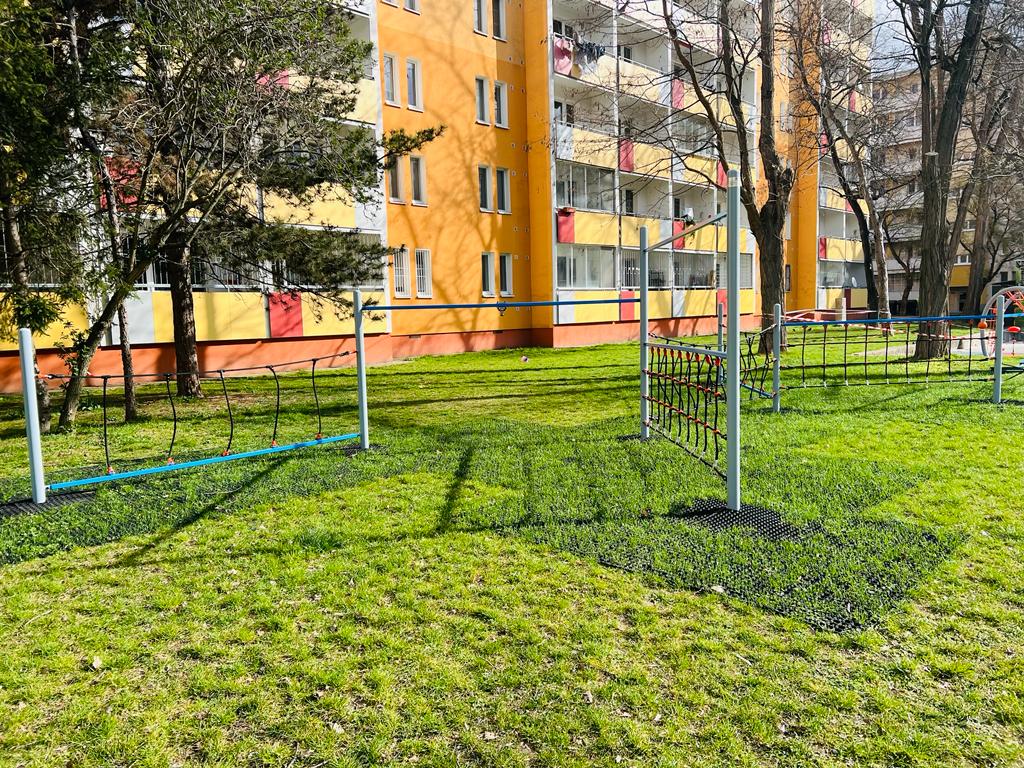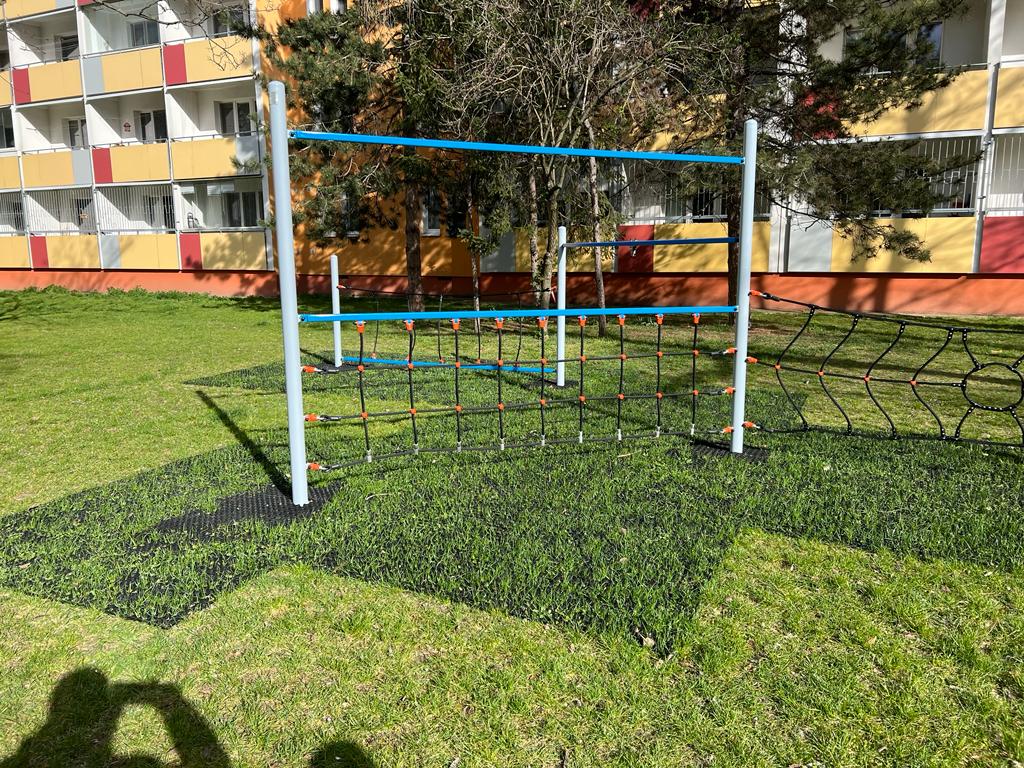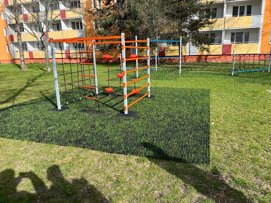 Eine weiche Gummimatte ist eine Option für einen nach STN EN 1177 zertifizierten Sicherheitsboden für Spielplätze, Street-Workout-Anlagen und Fitnessparks mit einer kritischen Fallhöhe von bis zu 3 Metern. Dank der Matte vermeiden Sie einen matschigen Spielplatzboden und die Beschädigung des Rasens. Sollte der Rasen zu groß werden, mähen Sie ihn einfach mit einem Rasenmäher. Stürze von Spielplatznutzern werden durch den weichen, rutschfesten Gummi abgefedert.
