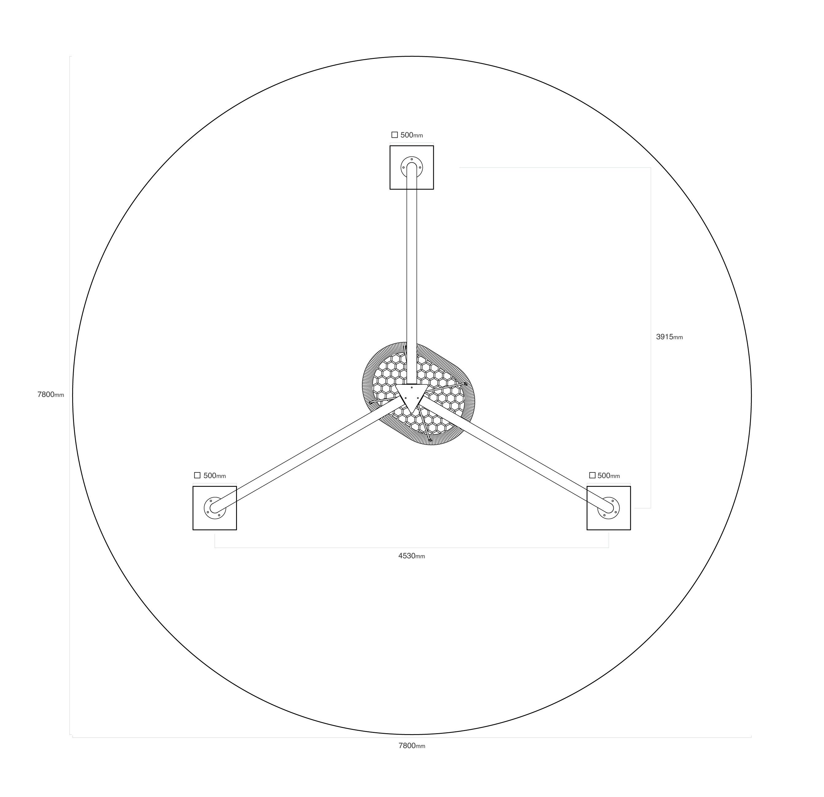 - Die Sicherheitszonen um die Spielelemente entsprechen den normgerechten Abmessungen und überlappen sich nicht.