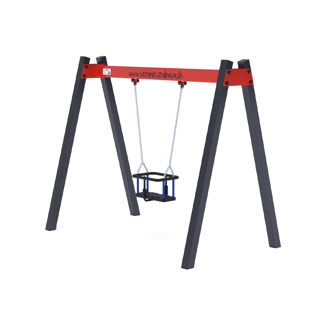 Hängeschaukel bis 1 m Die Hängeschaukel mit Babysitz für ein Kind ist aus feuerverzinktem Stahl gefertigt und pulverbeschichtet. Die Verbindungsstücke bestehen aus Edelstahl und sind mit Kunststoffkappen versehen, um Langlebigkeit und Sicherheit zu erhöhen. Als Landefläche wird eine Kunstrasenmatte empfohlen.