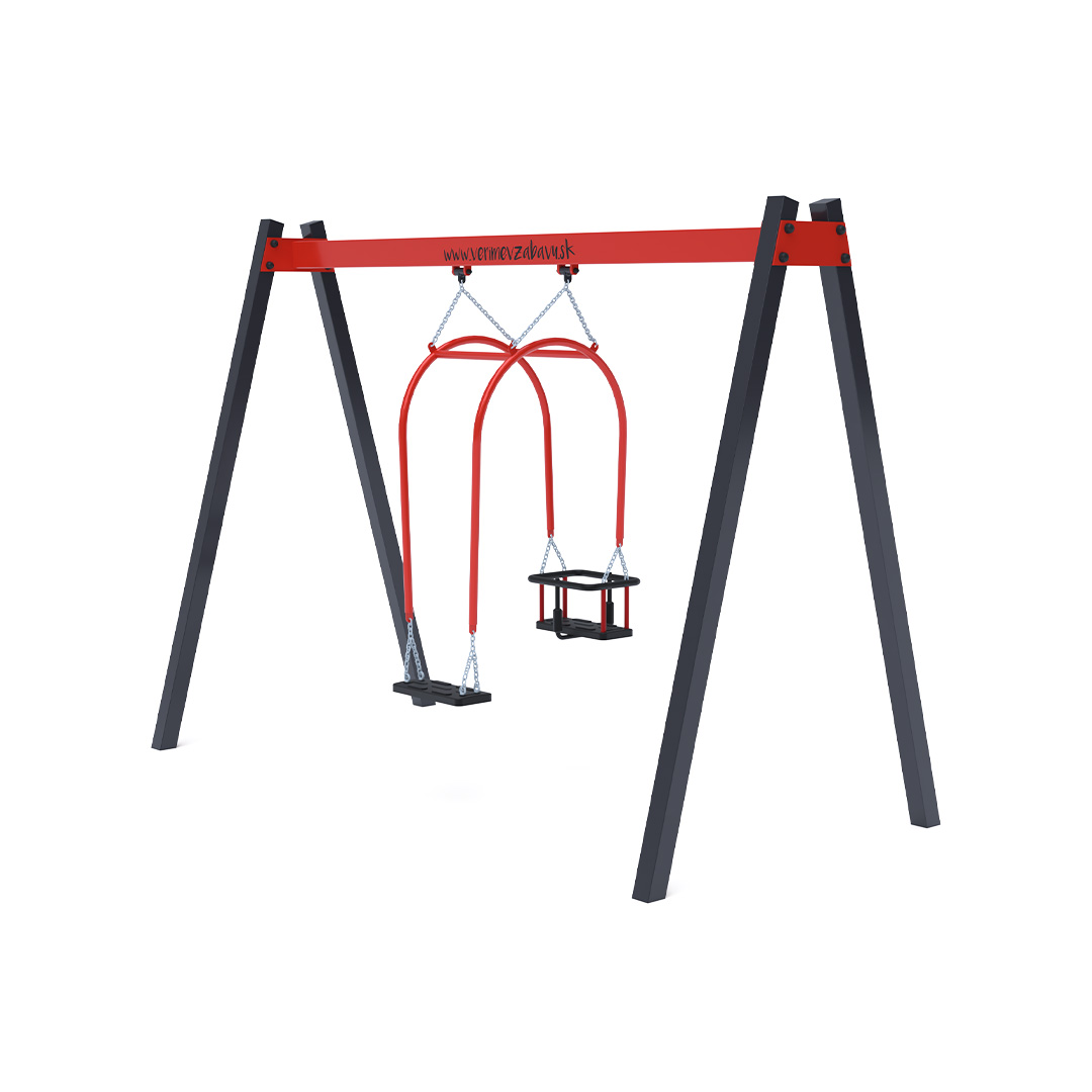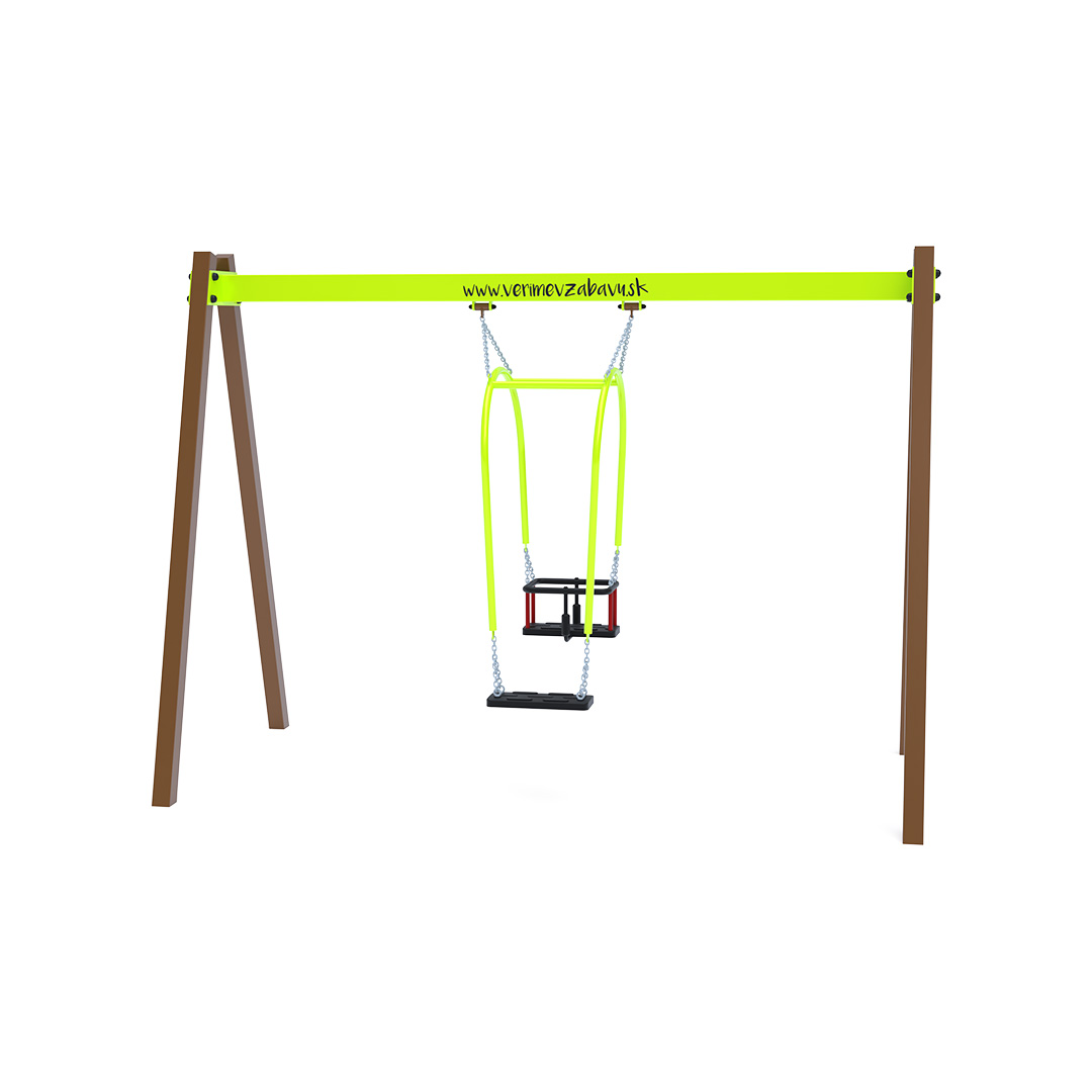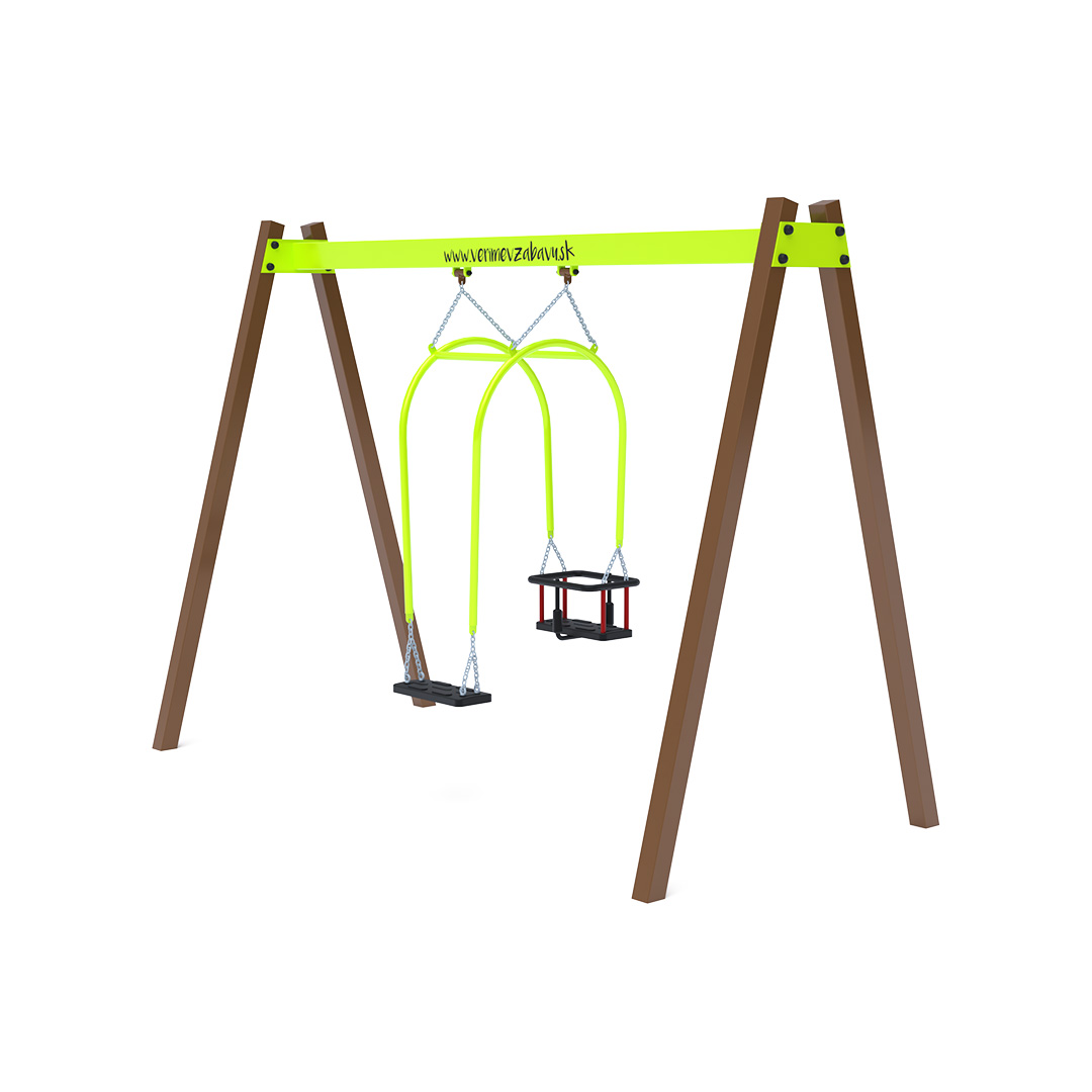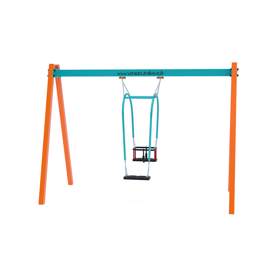 Wir haben eine Hängeschaukel für Mutter und Kind entwickelt, hergestellt und zertifiziert. Dank ihrer Konstruktion können ein Kind ab einem Jahr und ein Erwachsener gemeinsam schaukeln. Die Schaukel ist so konzipiert, dass das Ein- und Aussteigen perfekt ausbalanciert ist, selbst bei unterschiedlichem Gewicht von Kind und Erwachsenem.