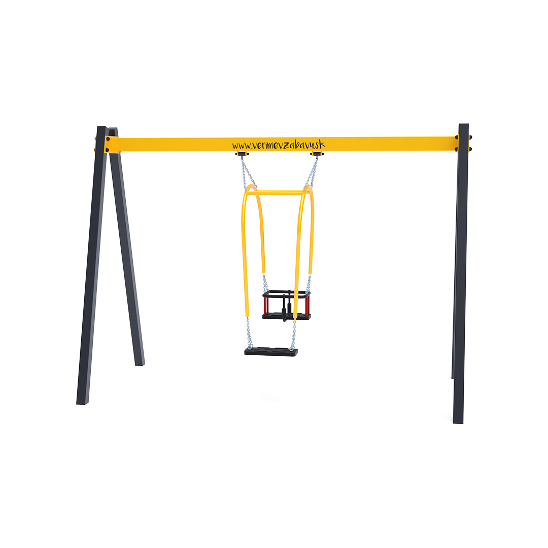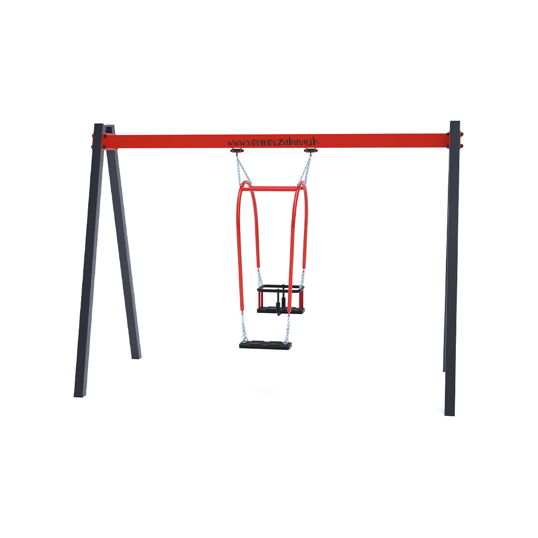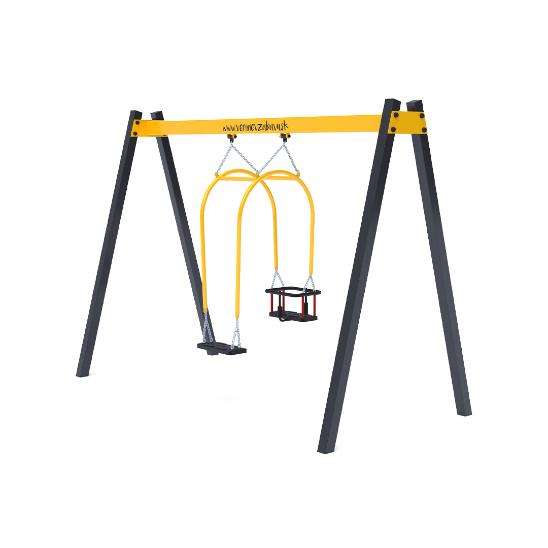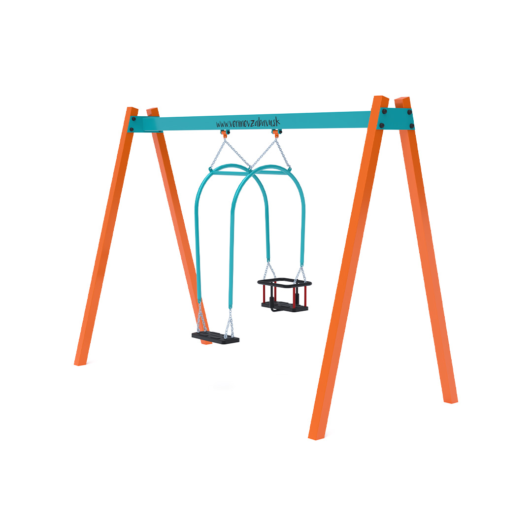 Wir haben eine Hängeschaukel für Mutter und Kind entwickelt, hergestellt und zertifiziert. Dank ihrer Konstruktion können ein Kind ab einem Jahr und ein Erwachsener gemeinsam schaukeln. Die Schaukel ist so konzipiert, dass das Ein- und Aussteigen perfekt ausbalanciert ist, selbst bei unterschiedlichem Gewicht von Kind und Erwachsenem.