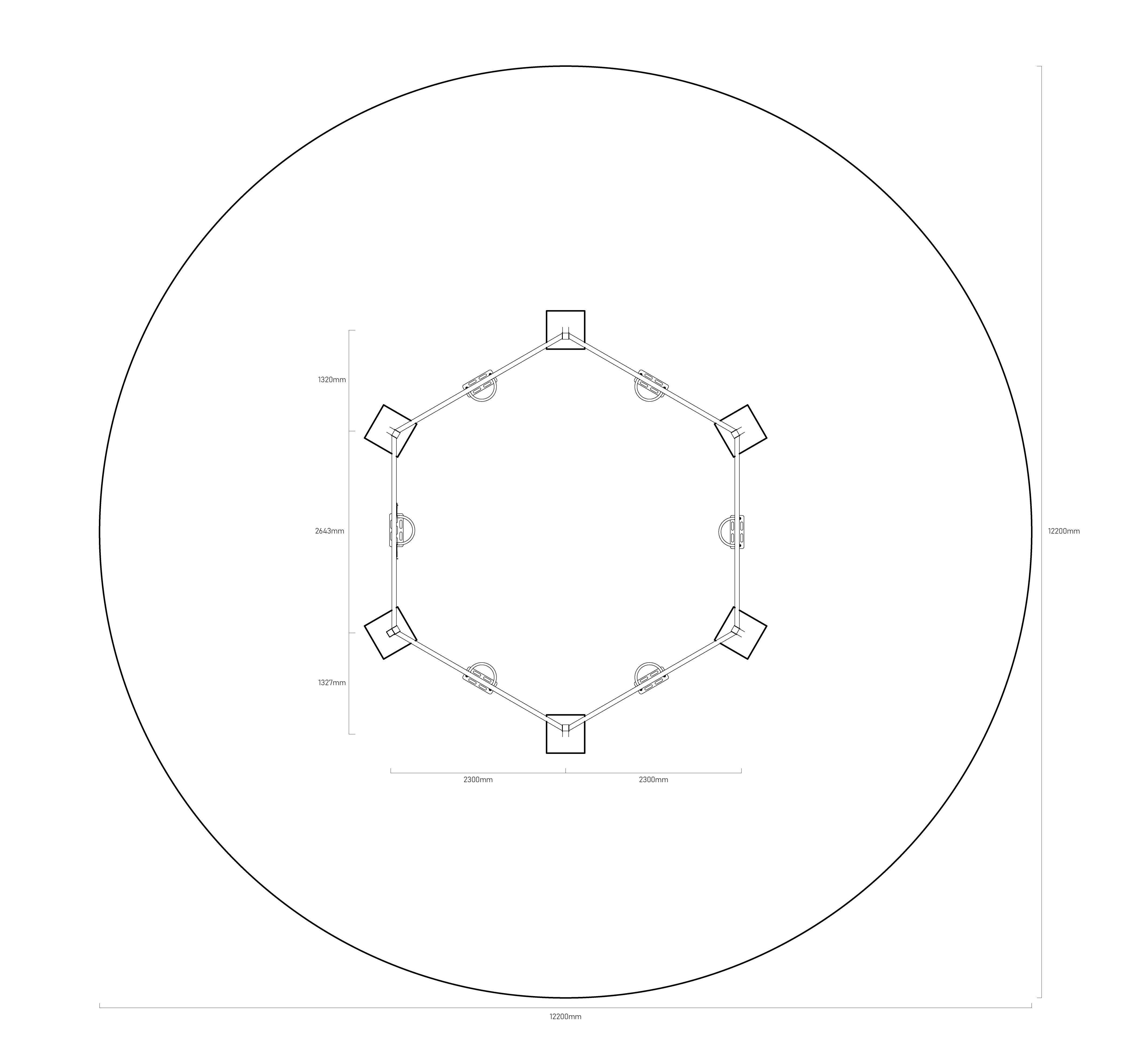 Hängeschaukel in Sechseckform Eine Schaukelanlage in Sechseckform mit sechs hängenden Kettenschaukeln. Sie ist aus feuerverzinktem Stahl gefertigt und pulverbeschichtet. Die Verbindungsstücke bestehen aus Edelstahl und sind mit Kunststoffkappen versehen, um Langlebigkeit und Sicherheit zu erhöhen.