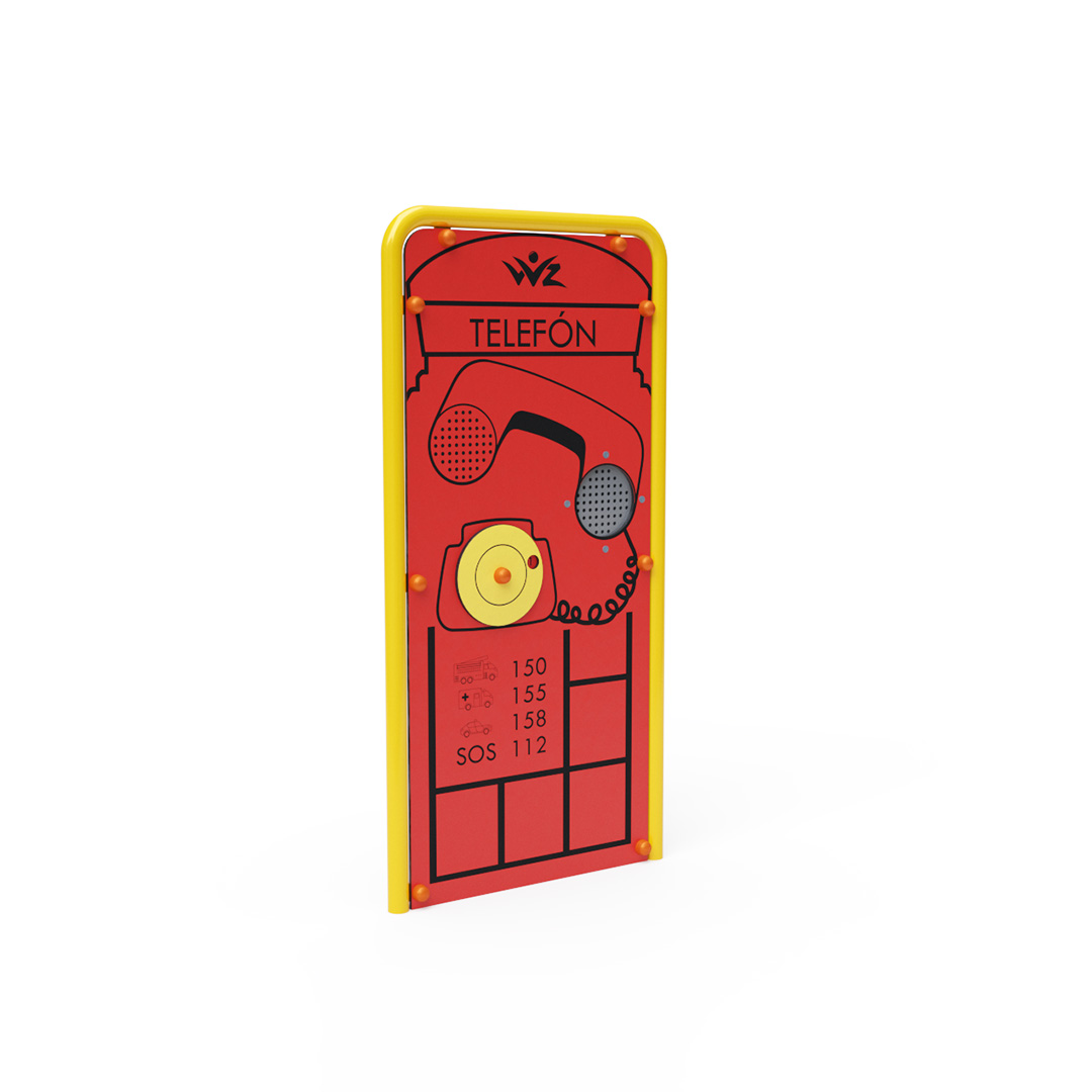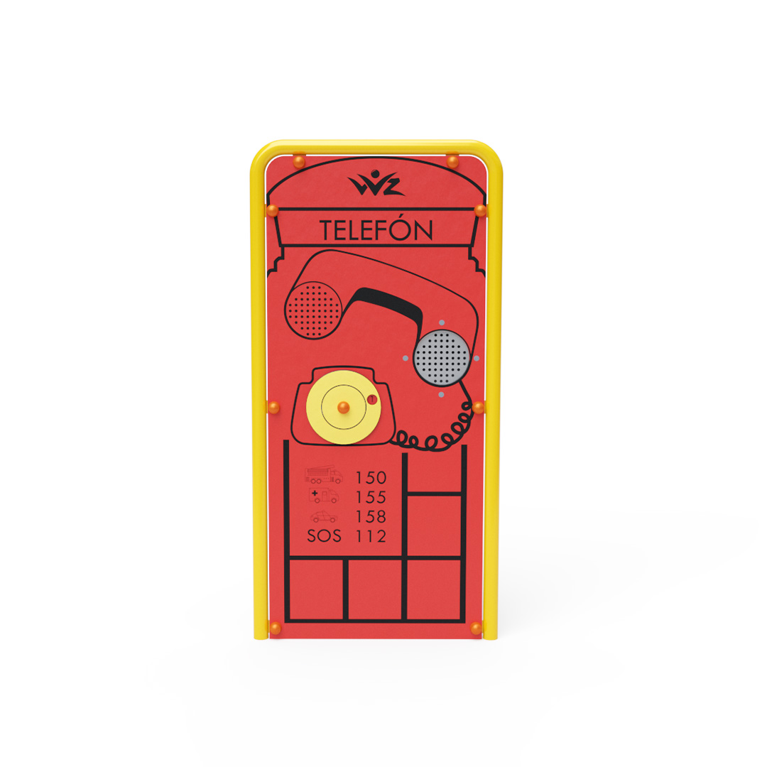 Eine wirklich funktionale Telefonzelle im englischen Stil, komplett mit Notrufnummern. Dank der unterirdischen Verbindung beider Telefonteile können Kinder sich über den gesamten Spielplatz hinweg unterhalten. Die Konstruktion des Lernpanels besteht aus verzinktem Stahl