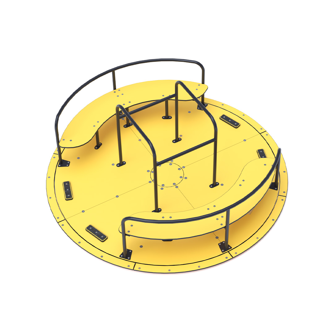 Ein Karussell, das dank barrierefreiem Zugang allen Kindern ohne Vorbehalte Spaß bietet. Es bietet sicheren Platz für zwei Rollstühle, Begleitpersonen und Kinder. Insgesamt kann das Karussell bis zu zehn Personen befördern. Die Karussellkonstruktion besteht aus verzinktem und pulverbeschichtetem Stahl. Sitze und Boden sind aus ökologischem HPL-Material gefertigt, das UV-beständig, ungiftig, recycelbar und bruchfest ist. Es besteht keine Verletzungsgefahr für Kinder durch scharfe Kanten oder Splitter.