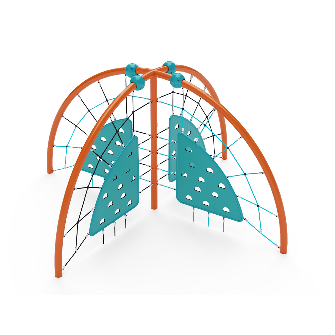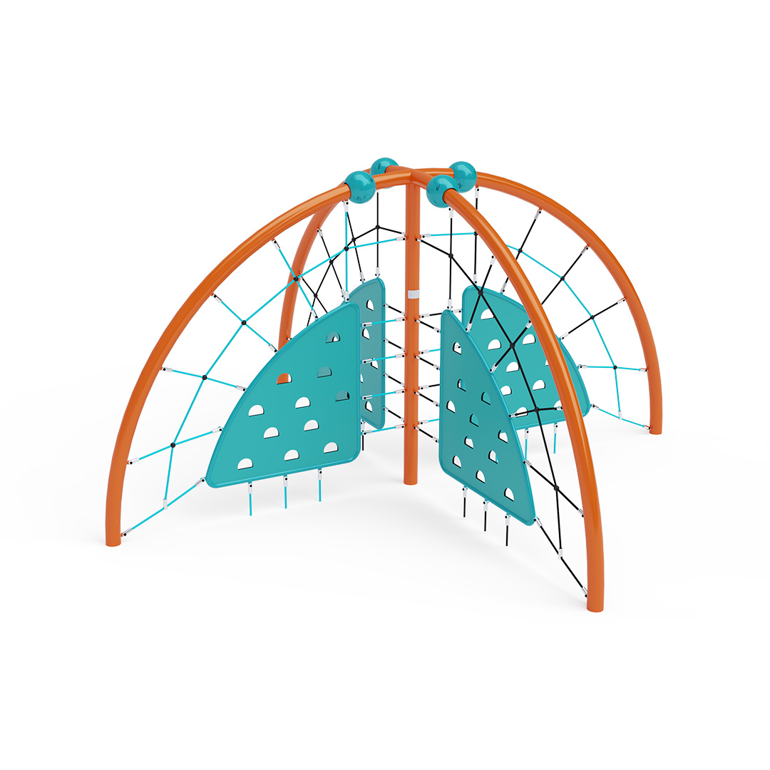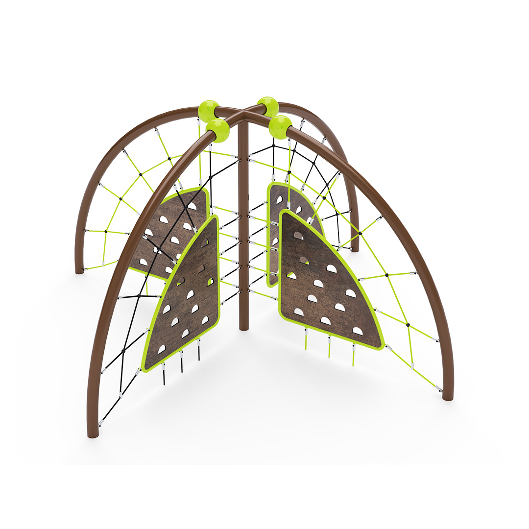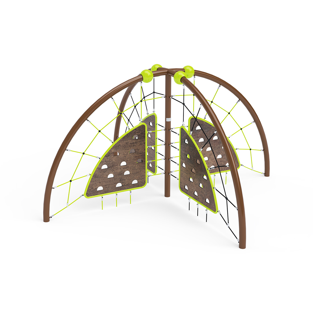 Der Kletterbogen ist nicht nur für junge Kletterer, sondern auch für Kinder geeignet, die ihr Gleichgewicht üben möchten. Die Konstruktion besteht aus verzinktem Stahl mit einer Einbrennlackierung (KOMAXIT). Das Kletterbrett ist aus recycelbarem HPL-Material gefertigt. Alle Verbindungen sind aus Edelstahl und mit Kunststoffkappen versehen, um die Sicherheit und Langlebigkeit zu erhöhen. Die Seile bestehen aus Polyesterfasern, die um den Kern gewickelt sind. Diese Konstruktion erhöht die Festigkeit und Widerstandsfähigkeit der Seile gegen mechanische Belastung. Polyester selbst besitzt viele positive Eigenschaften: Es ist resistent gegen Mikroorganismen und Witterungseinflüsse, trocknet schnell nach Regen, ist farbecht und zeichnet sich durch hohe Festigkeit aus.