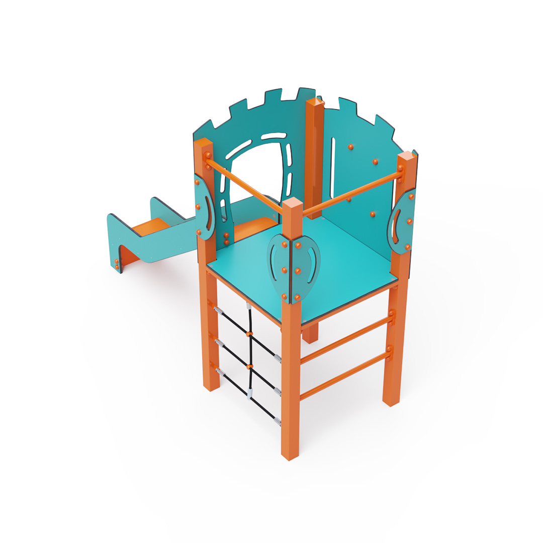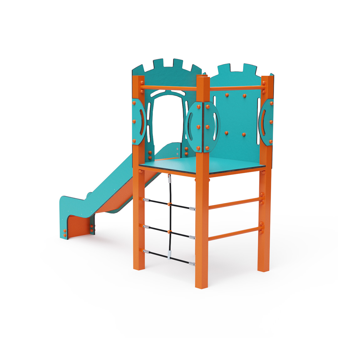 Kombiniertes Kletterturm-Set – ein Turm, den Kinder über eine Leiter oder ein Seil erklimmen und anschließend über eine Rutsche hinunterrutschen können. Die Stahlkonstruktion ist dank Verzinkung und widerstandsfähiger Pulverbeschichtung witterungsbeständig. Das verwendete HPL-Material ist chemikalienbeständig, UV-beständig, farbecht, ungiftig, recycelbar und bruchfest. Es besteht keine Verletzungsgefahr durch scharfe Kanten oder Splitter. Die Seile bestehen aus Polyesterfasern, die um eine zentrale Verstärkung gewickelt sind. Diese Konstruktion erhöht die Festigkeit und Widerstandsfähigkeit der Seile gegen mechanische Belastung. Das Polyester selbst ist resistent gegen Mikroorganismen und Witterungseinflüsse, trocknet schnell nach Regen, ist farbecht und zeichnet sich durch hohe Festigkeit aus. Alle Verbindungen sind aus Edelstahl und mit Kunststoffkappen versehen, um Langlebigkeit und Sicherheit zu erhöhen.