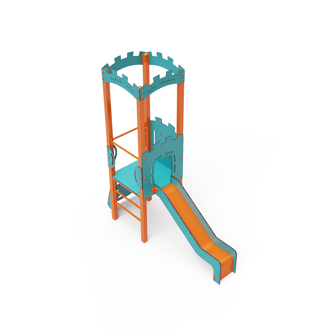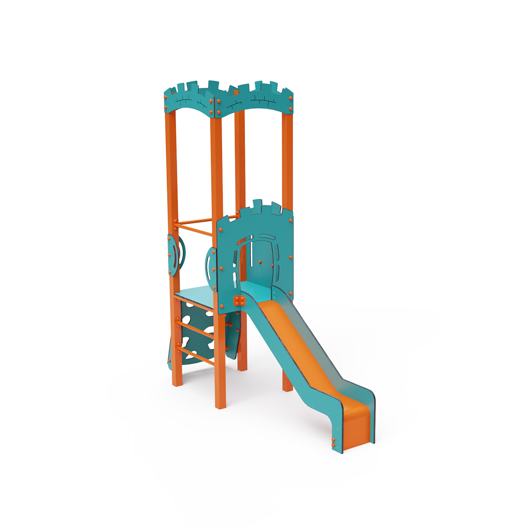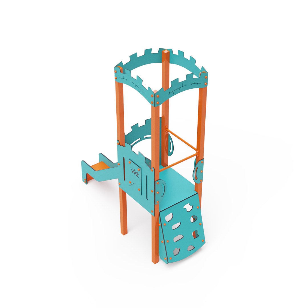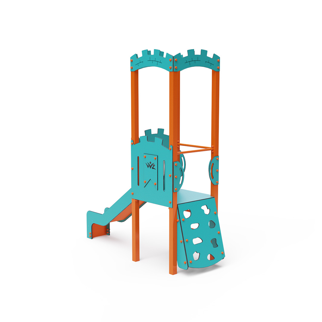 Kombiniertes Kletterturm-Set – ein Turm mit Wänden, an denen Kinder hochklettern oder eine geriffelte Kletterstruktur nutzen und anschließend eine Rutsche hinuntersausen können. Die Stahlkonstruktion ist dank Verzinkung und widerstandsfähiger Pulverbeschichtung witterungsbeständig. Das verwendete HPL-Material ist chemikalienbeständig, UV-beständig, farbecht, ungiftig, recycelbar und bruchfest. Es besteht keine Verletzungsgefahr durch scharfe Kanten oder Splitter. Alle Verbindungen sind aus Edelstahl und mit Kunststoffkappen versehen, um Langlebigkeit und Sicherheit zu erhöhen.