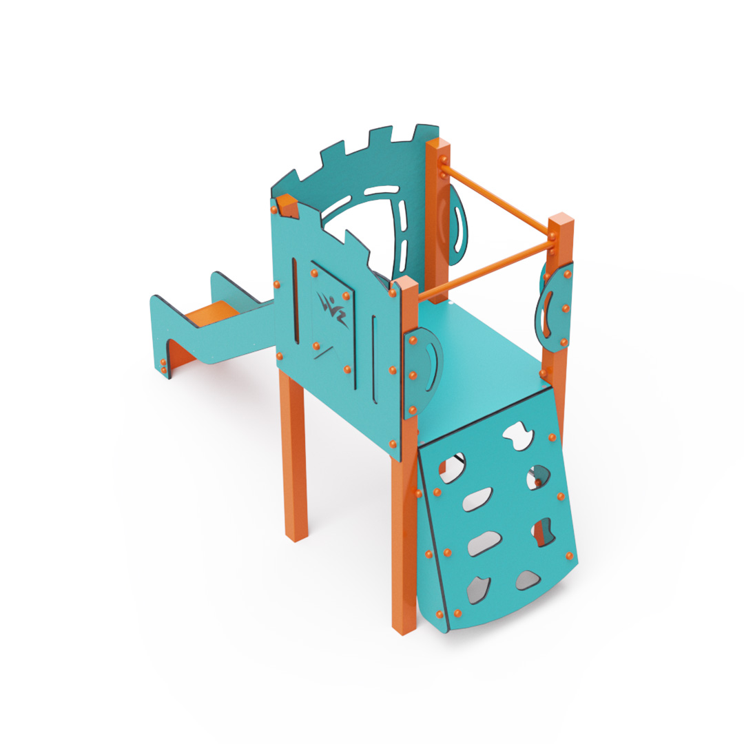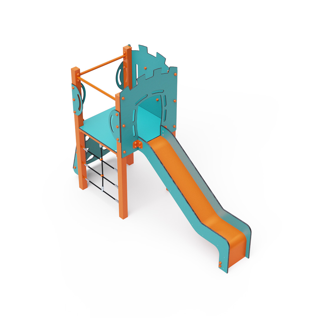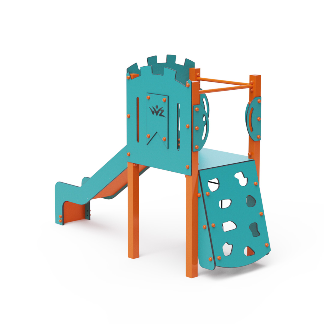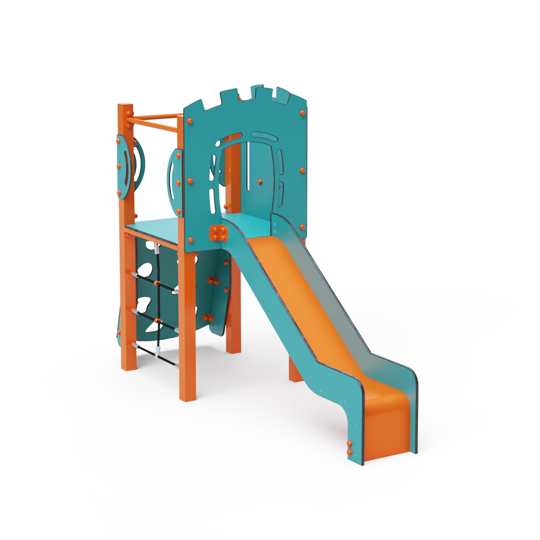 Kombiniertes Kletterturm-Set – ein Turm, an dem Kinder entweder eine Seilkletterwand oder eine Kletterwand mit Griffen hochklettern und anschließend eine Rutsche hinunterrutschen können. Die Stahlkonstruktion ist dank Verzinkung und widerstandsfähiger Pulverbeschichtung witterungsbeständig. Der verwendete HDPE-Kunststoff ist chemikalienbeständig, UV-beständig, farbecht, ungiftig, recycelbar und bruchfest. Es besteht keine Verletzungsgefahr durch scharfe Kanten oder Splitter. Die Seile bestehen aus Polyesterfasern, die um eine zentrale Verstärkung gewickelt sind. Diese Konstruktion erhöht die Festigkeit und Widerstandsfähigkeit der Seile gegen mechanische Belastung. Das Polyester selbst ist resistent gegen Mikroorganismen, witterungsbeständig, trocknet schnell nach Regen, ist farbecht und zeichnet sich durch hohe Festigkeit aus. Alle Verbindungen sind aus Edelstahl und mit Kunststoffkappen versehen, um Langlebigkeit und Sicherheit zu erhöhen.