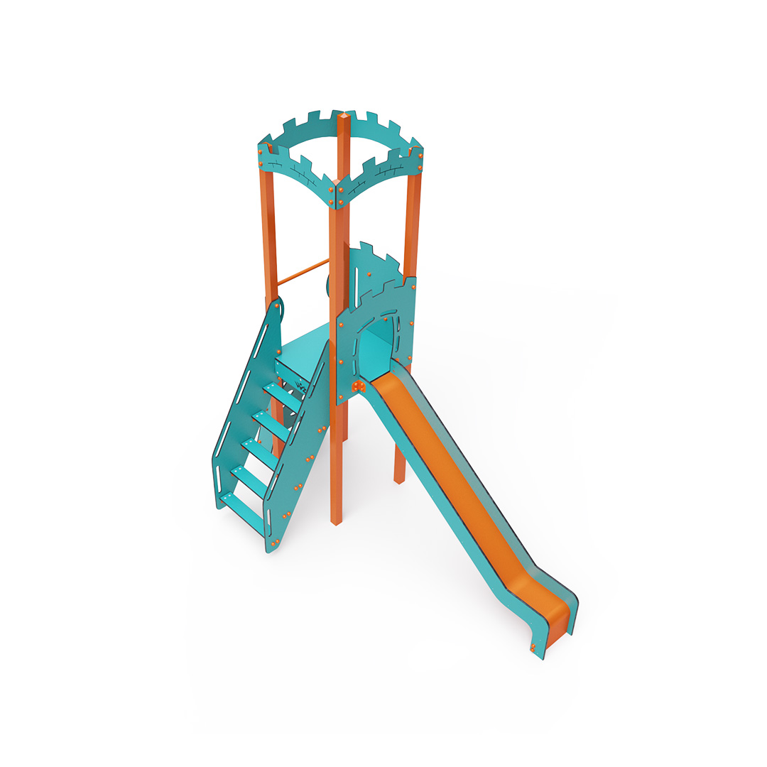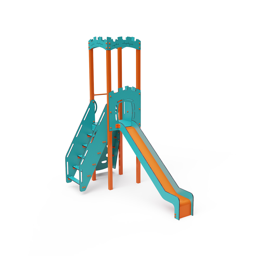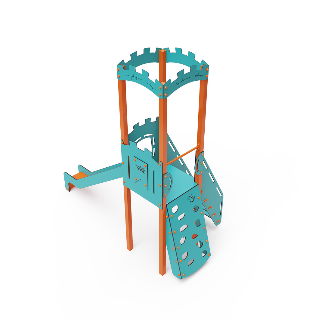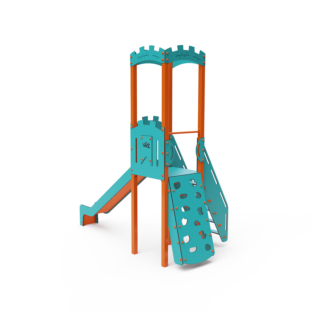Kombiniertes Turm-Set – ein Turm mit Wänden, an denen Kinder über Stufen oder die Kletterwand mit Griffen hochklettern und die Rutsche hinuntersausen können. Das türkis-orange Design lockt Kinder schon von Weitem zum Spielen an. Die Stahlkonstruktion ist dank Feuerverzinkung und strapazierfähiger Pulverbeschichtung witterungsbeständig. Das verwendete HPL-Material ist chemikalienbeständig, UV-beständig, farbecht, ungiftig, recycelbar und bruchfest. Es besteht keine Verletzungsgefahr durch scharfe Kanten oder Splitter. Alle Verbindungen sind aus Edelstahl und mit Kunststoffkappen versehen, um Langlebigkeit und Sicherheit zu erhöhen.