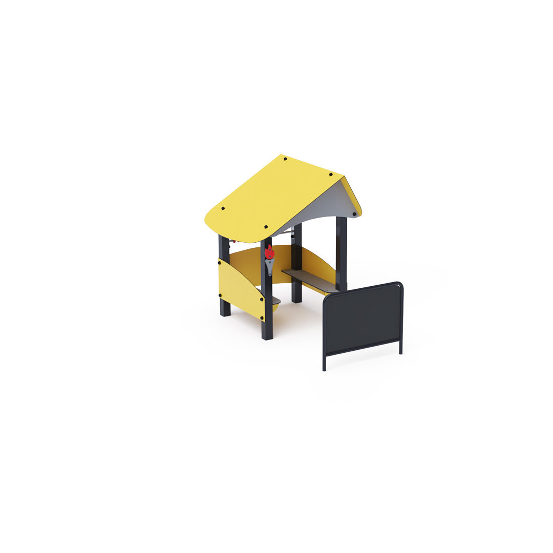Ein kleines Lernhaus voller Spaß, das Kindern nicht nur Neues beibringt, sondern sie auch unterhält. Das Haus mit seinem schrägen Dach ist mit einer Zeichentafel und einem kleinen Taschenrechner ausgestattet.