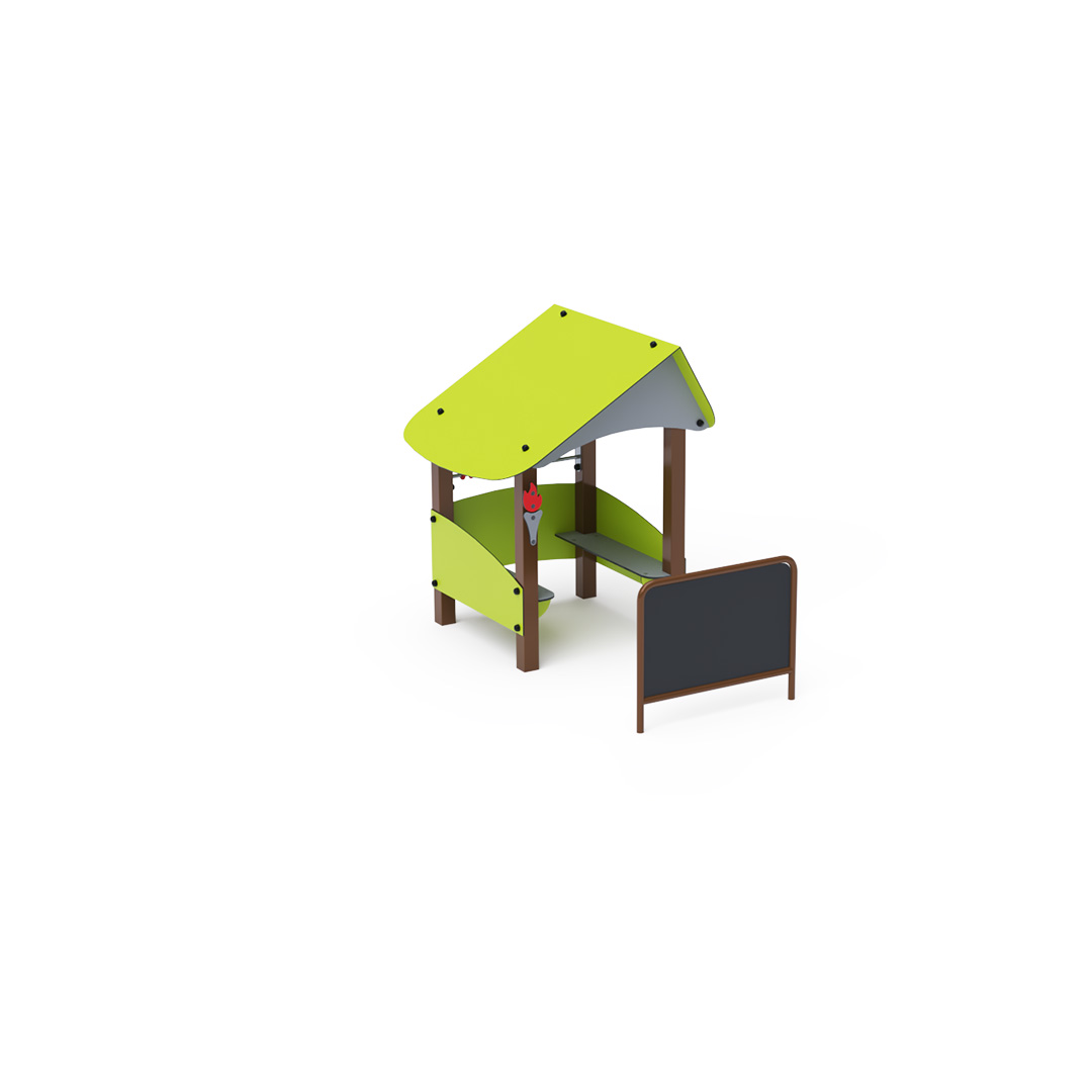 Die Hauskonstruktion besteht aus verzinktem und pulverbeschichtetem Stahl. Alle Platten sind aus UV-beständigem, farbechtem, ungiftigem und bruchfestem HPL-Material gefertigt. Alle Verbindungen sind aus Edelstahl und mit Kunststoffkappen abgedeckt.