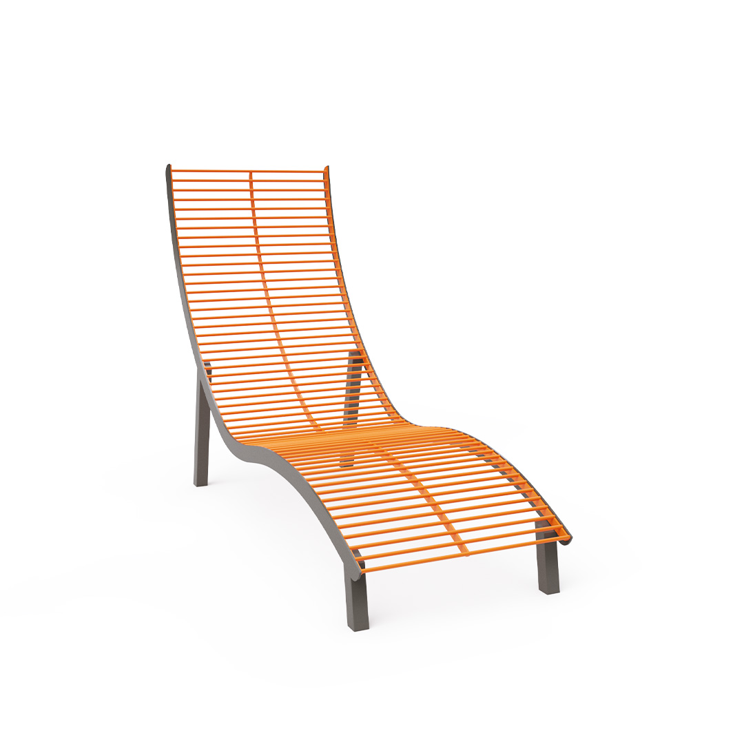 Design-Sonnenliege, geeignet für Entspannungszonen, primär für den Außenbereich – Parks, Spielplätze – aber auch für den Innenbereich – Einkaufszentren, Flughafenhallen usw.