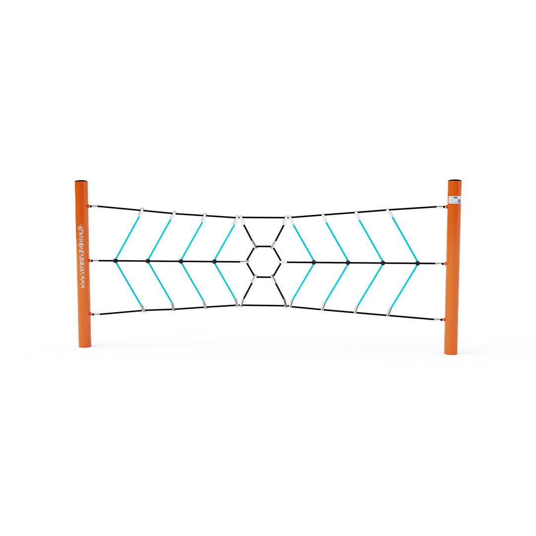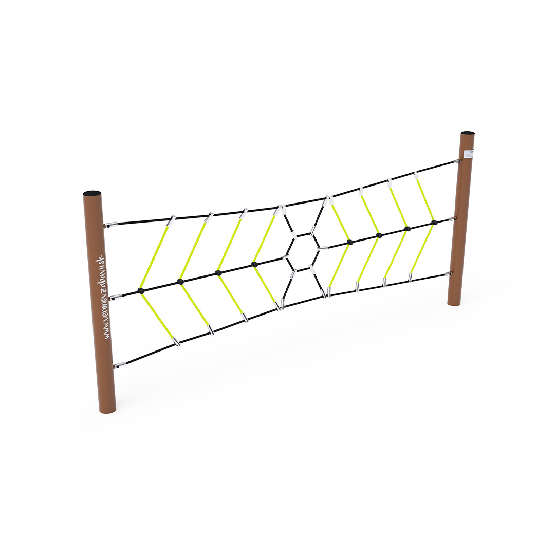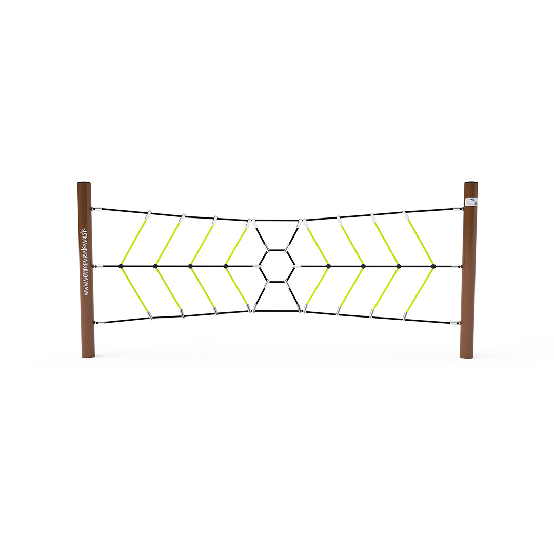 Der Affenparcours, ein vertikales Seilnetz, stellt die Handkraft jedes Kindes auf die Probe. Das Spielelement besteht aus feuerverzinktem Stahl mit hochwertiger Oberflächenveredelung. Die Verbindungsstücke sind aus Edelstahl und mit Kunststoffkappen versehen, um Sicherheit und Langlebigkeit zu gewährleisten. Die Seile bestehen aus Polyesterfasern, die um den Kern gewickelt sind. Diese Konstruktion erhöht die Festigkeit und Widerstandsfähigkeit des Seils gegen mechanische Belastung. Polyester besitzt viele positive Eigenschaften. Es ist resistent gegen Mikroorganismen und Witterungseinflüsse, trocknet schnell nach Regen, ist farbecht und zeichnet sich durch hohe Festigkeit aus.
