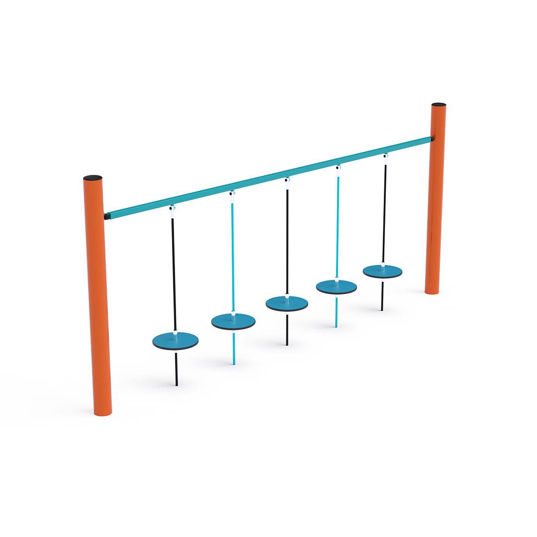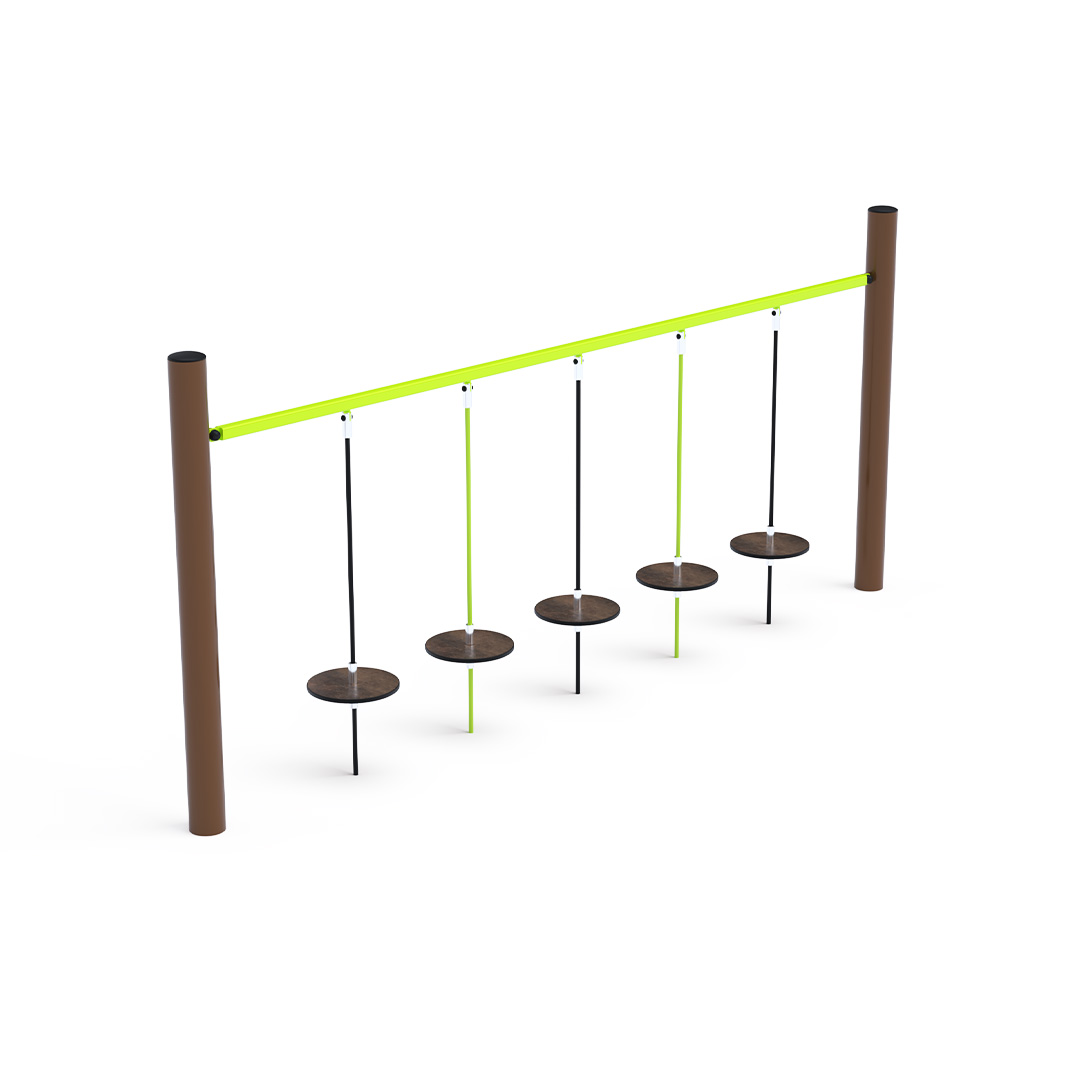 Der Affenparcours mit hängenden „Steinen“ testet Ihre Konzentrationsfähigkeit und gleichzeitig Ihre Körperkoordination. Von einem frei hängenden Stein zum nächsten zu gelangen, ist gar nicht so einfach. Das Spielelement besteht aus feuerverzinktem Stahl mit einer hochwertigen Oberflächenveredelung. Die Verbindungsstücke sind aus Edelstahl gefertigt und mit Kunststoffkappen versehen, um die Sicherheit und Langlebigkeit zu erhöhen. Die Seile bestehen aus Polyesterfasern, die um den Kern gewickelt sind. Diese Konstruktion erhöht die Festigkeit und Widerstandsfähigkeit der Seile gegen mechanische Belastung. Polyester besitzt viele positive Eigenschaften. Es ist resistent gegen Mikroorganismen, witterungsbeständig, trocknet schnell nach Regen, ist farbecht und zeichnet sich durch hohe Festigkeit aus.