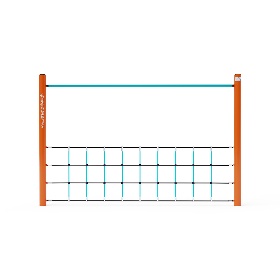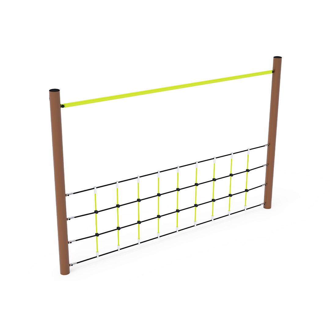 Der Affenparcours, bestehend aus einem vertikalen Seilnetz mit einer horizontalen Stange, stellt die Kraft der Hände jedes Kindes auf die Probe. Jeder Spielplatz wird mit einem Affenparcours noch attraktiver. Das Spielgerät ist aus feuerverzinktem Stahl mit hochwertiger Oberflächenveredelung gefertigt. Die Verbindungsstücke bestehen aus Edelstahl und sind mit Kunststoffkappen versehen, um Sicherheit und Langlebigkeit zu gewährleisten. Die Seile sind aus Polyesterfasern gefertigt, die um den Kern gewickelt sind. Diese Konstruktion erhöht die Festigkeit und Widerstandsfähigkeit der Seile gegen mechanische Belastung. Polyester besitzt viele positive Eigenschaften. Es ist resistent gegen Mikroorganismen und Witterungseinflüsse, trocknet schnell nach Regen, ist farbecht und zeichnet sich durch hohe Festigkeit aus.