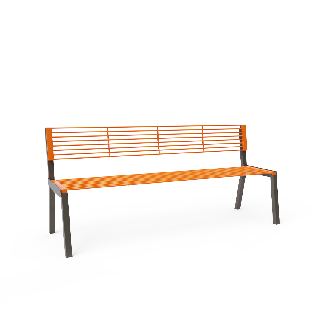 Diese Design-Parkbank mit Rückenlehne eignet sich nicht nur für den Außenbereich – Parks, Spielplätze, Plätze – sondern auch für den Innenbereich – Einkaufszentren, Flughafenhallen, Eingangshallen usw.