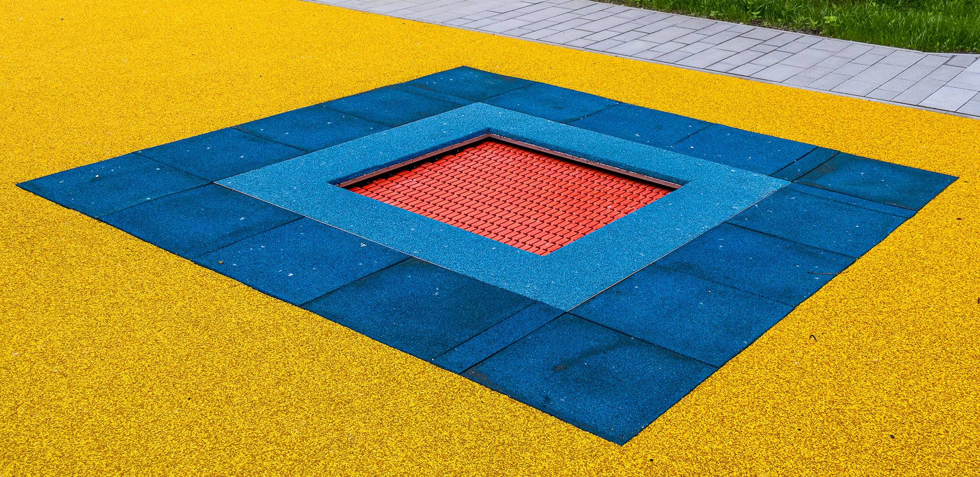Ein quadratisches Bodentrampolin mit einer Sprungmembran von einem Meter Durchmesser ist geeignet