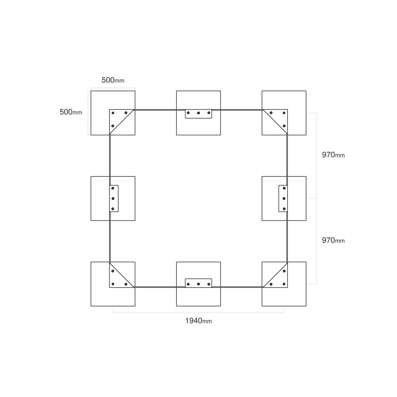 Elementabmessungen: 2,1 x 2,1 x 0,3 m (L x B x H)