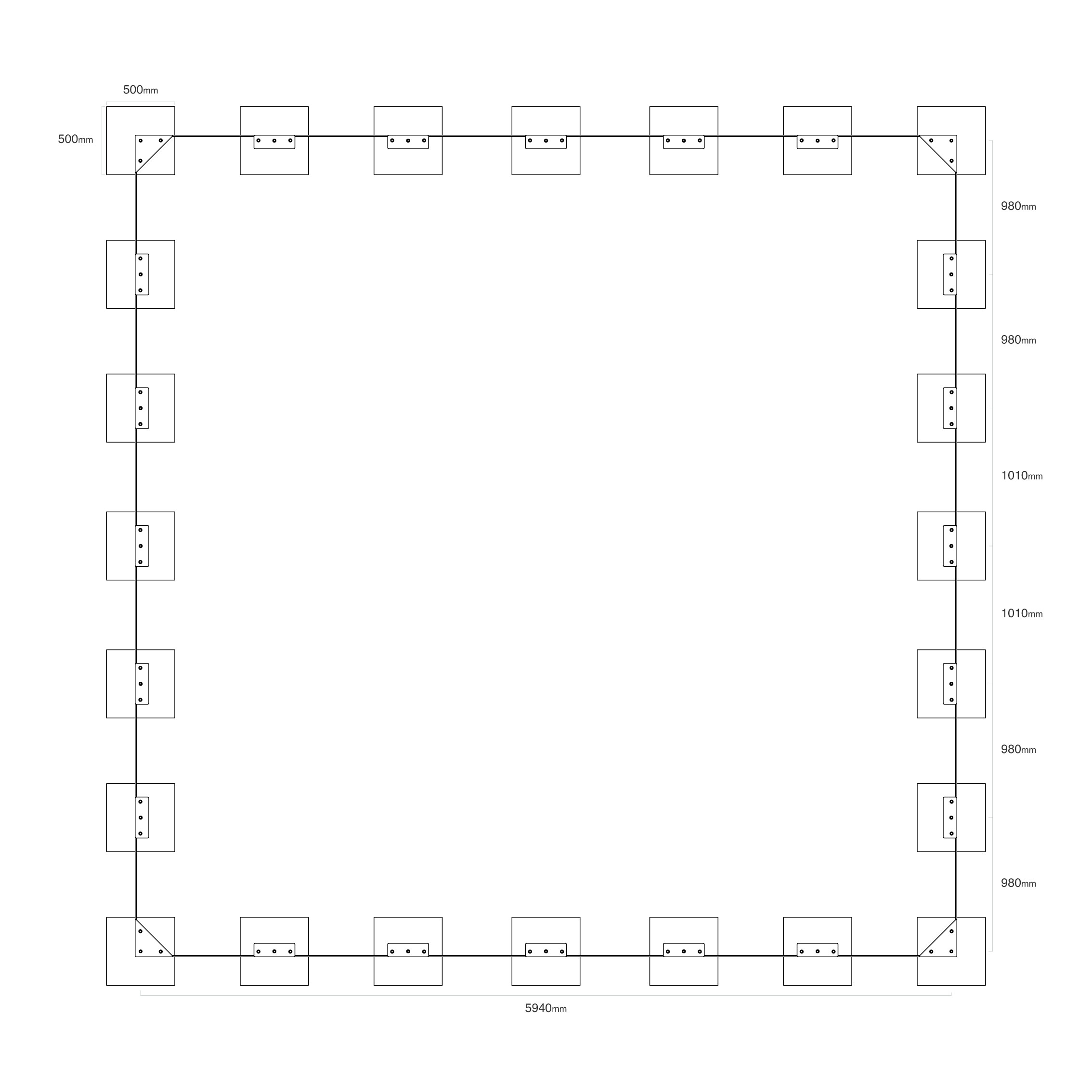 Elementabmessungen: 6,1 x 6,1 x 0,3 m (L x B x H)