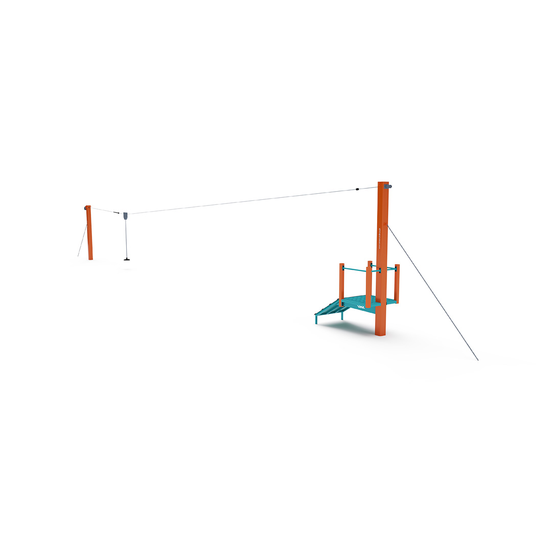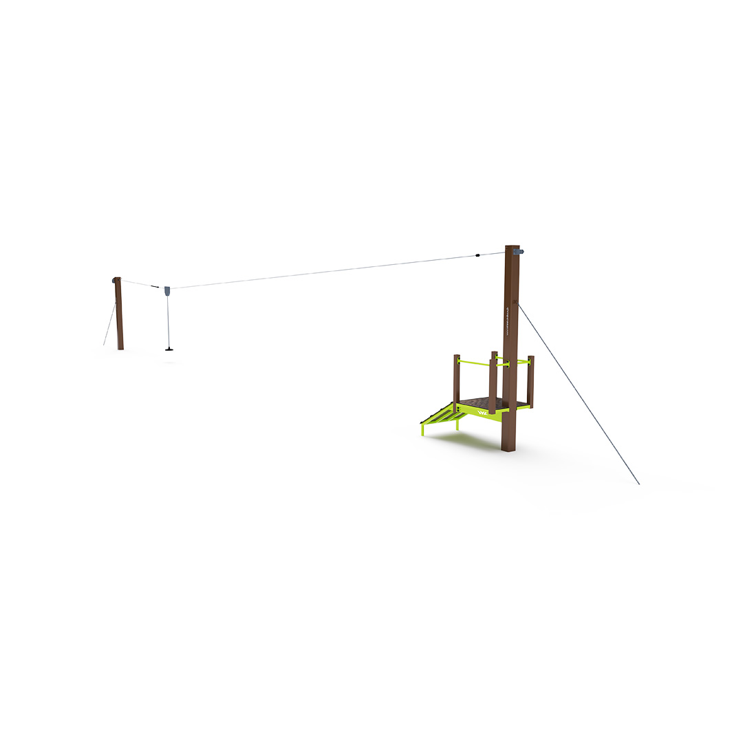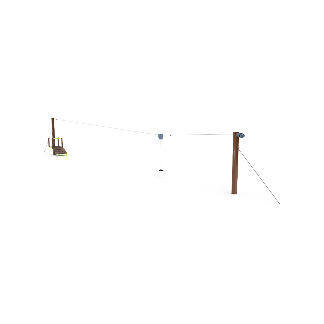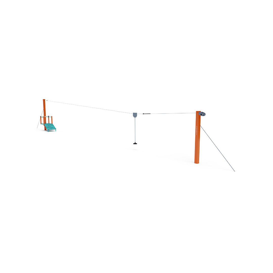 Eine eingleisige Seilbahn mit Seilzug bietet Kindern ein aufregendes Erlebnis: Sie „fliegen“ von einer Seite zur anderen, während sie mit den Füßen in der Luft auf dem Sitz sitzen. Das verleiht dem Kinderspielplatz mit Seilbahn eine ganz neue Dimension. Das Spielelement besteht aus feuerverzinktem Stahl mit einer hochwertigen Oberflächenveredelung. Die Verbindungen sind aus Edelstahl und mit Kunststoffkappen versehen, um die Sicherheit und Langlebigkeit zu erhöhen. Der Boden der Einstiegsplattformen ist aus HPL-Material gefertigt.