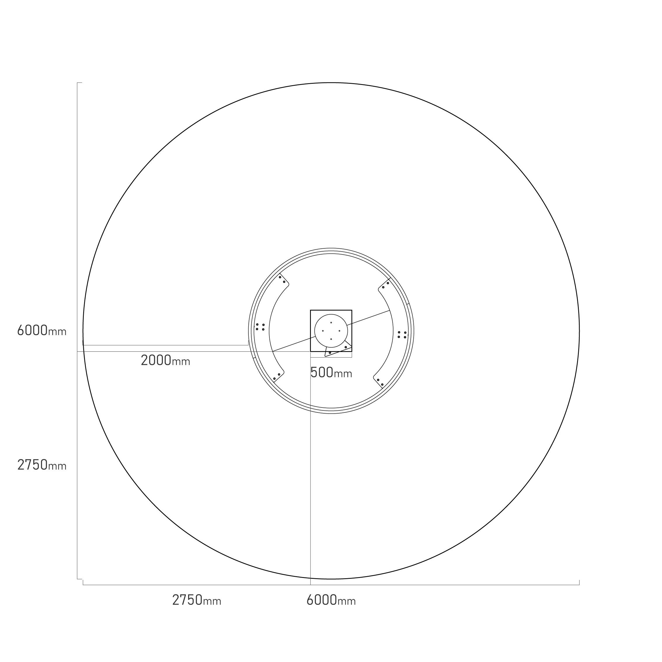 Elementabmessungen: Durchmesser 2,0 m, Höhe 0,75 m