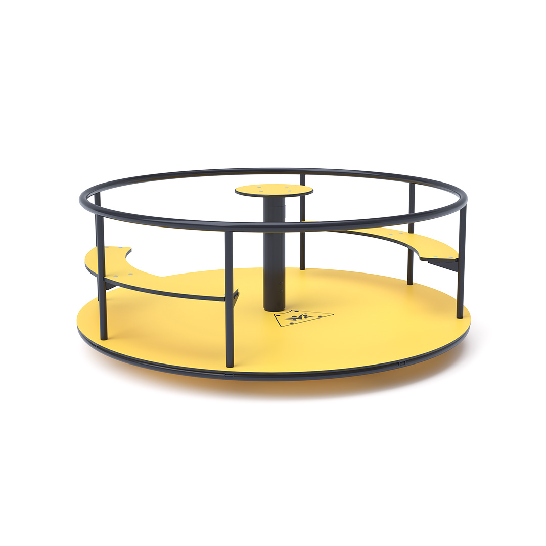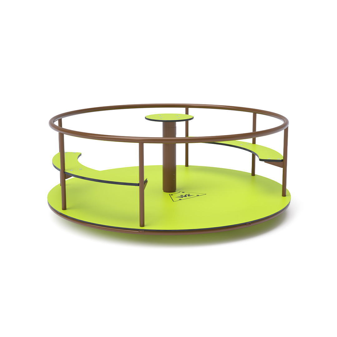 Das Kinderkarussell mit Sitzen ist aus feuerverzinktem Stahl gefertigt und pulverbeschichtet. Es wurde für eine lange Lebensdauer und sicheren Betrieb entwickelt. Das zentrale Lenkrad, der Boden und die Sitze bestehen aus dem umweltfreundlichen HPL-Material, das UV-beständig, ungiftig, recycelbar und bruchfest ist. Es besteht keine Verletzungsgefahr für Kinder durch scharfe Kanten oder Splitter.