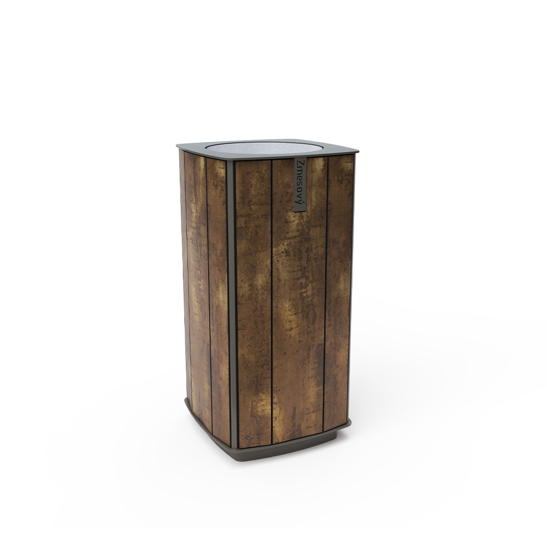Design-Mülleimer mit einem Fassungsvermögen von 50 l, geeignet für den Außenbereich (Parks, Spielplätze) sowie für den Innenbereich (Einkaufszentren, Flughafenhallen, Eingangshallen etc.).