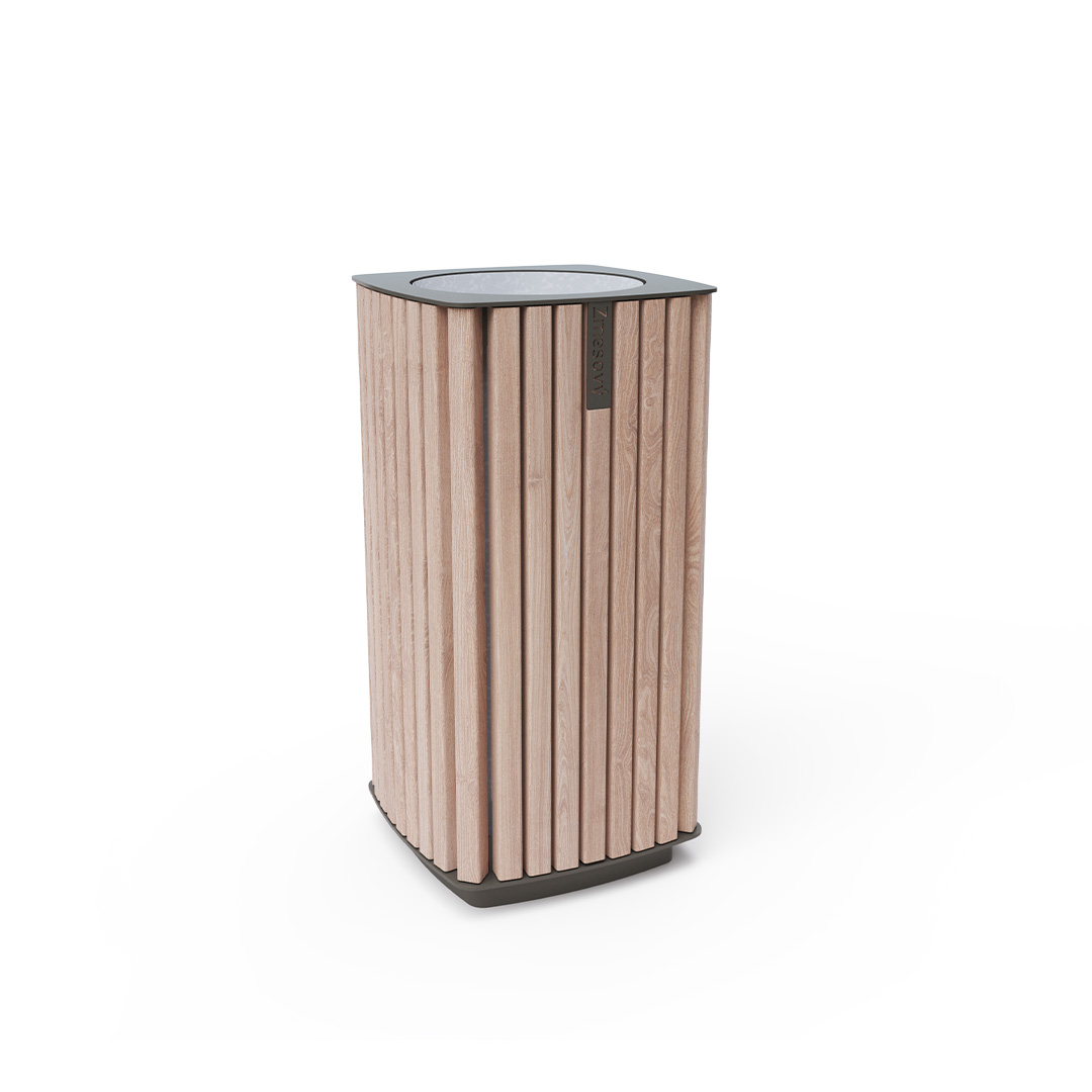 Design-Mülleimer mit 50 l Fassungsvermögen, geeignet für Außenbereiche wie Parks und Spielplätze sowie für Innenräume wie Einkaufszentren, Flughafenhallen, Eingangshallen etc.