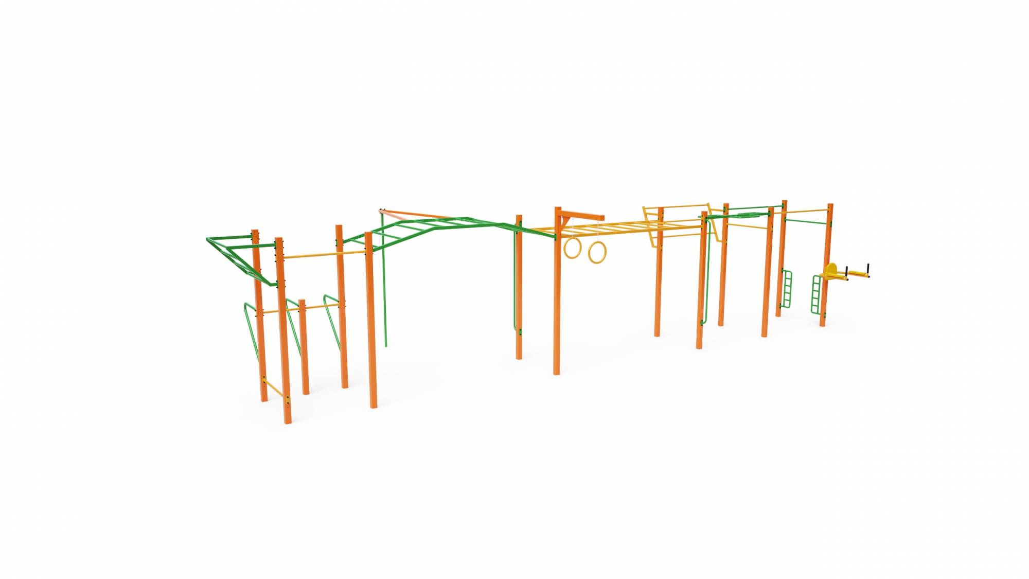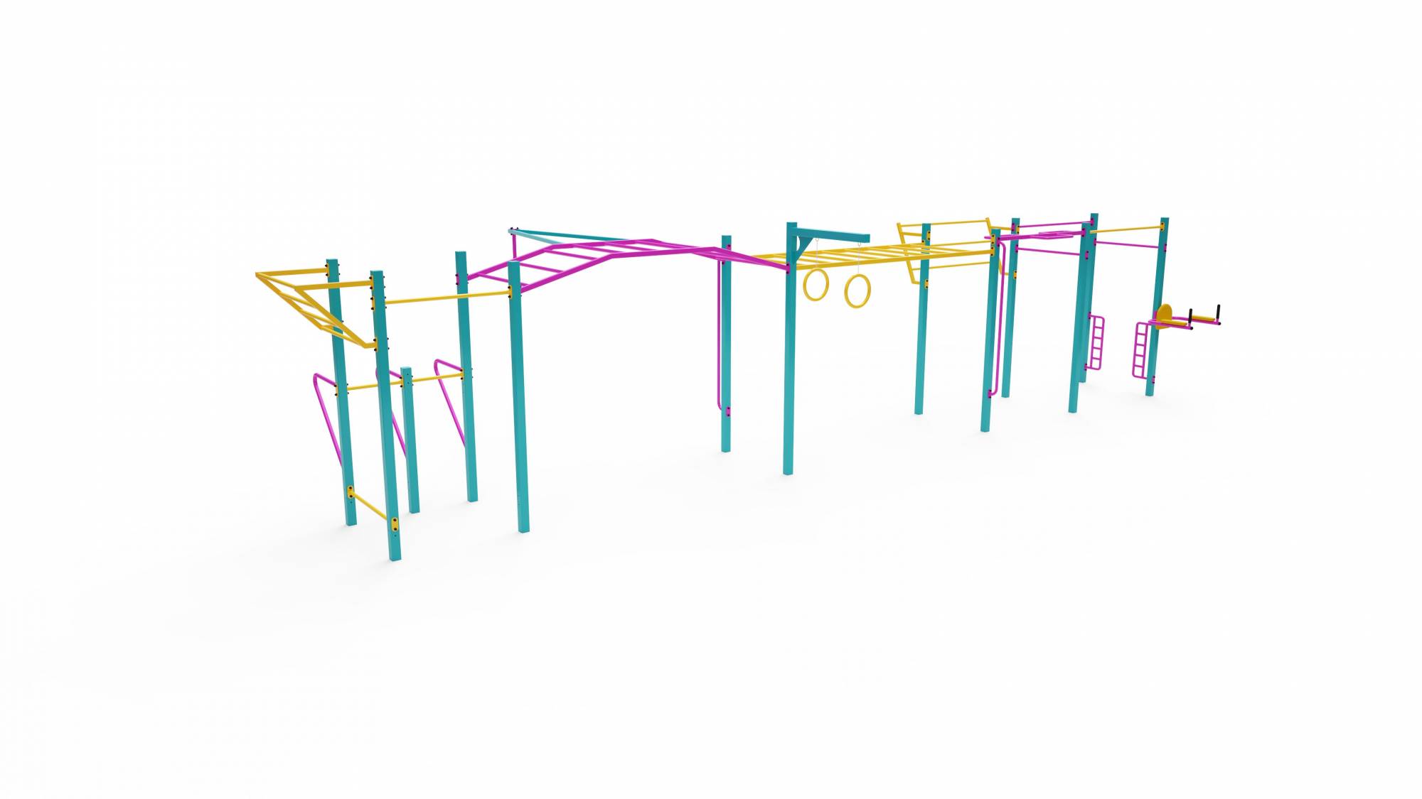 Street Workout ist eine immer beliebtere Form der Bewegung im Freien, bei der hauptsächlich mit dem eigenen Körpergewicht trainiert wird. Die Übungen sind abwechslungsreich, da die frische Luft und die vielfältigen Trainingsmöglichkeiten durch die verschiedenen Elemente und Setups die Bewegungsfreiheit einschränken. Es fördert nicht nur das körperliche, sondern auch das geistige Wohlbefinden. Große Anlage mit Reckstangen in verschiedenen Höhen, Vertikalstangen, Doppelparallelbarren, horizontalen Leitern und wird ergänzt durch Ringe, eine Steilleiter, ein Bauchtrainergerät, eine Liegestützleiter, eine Reckstange und eine Stange für Pole Dance.