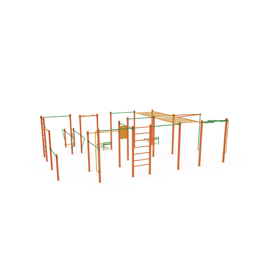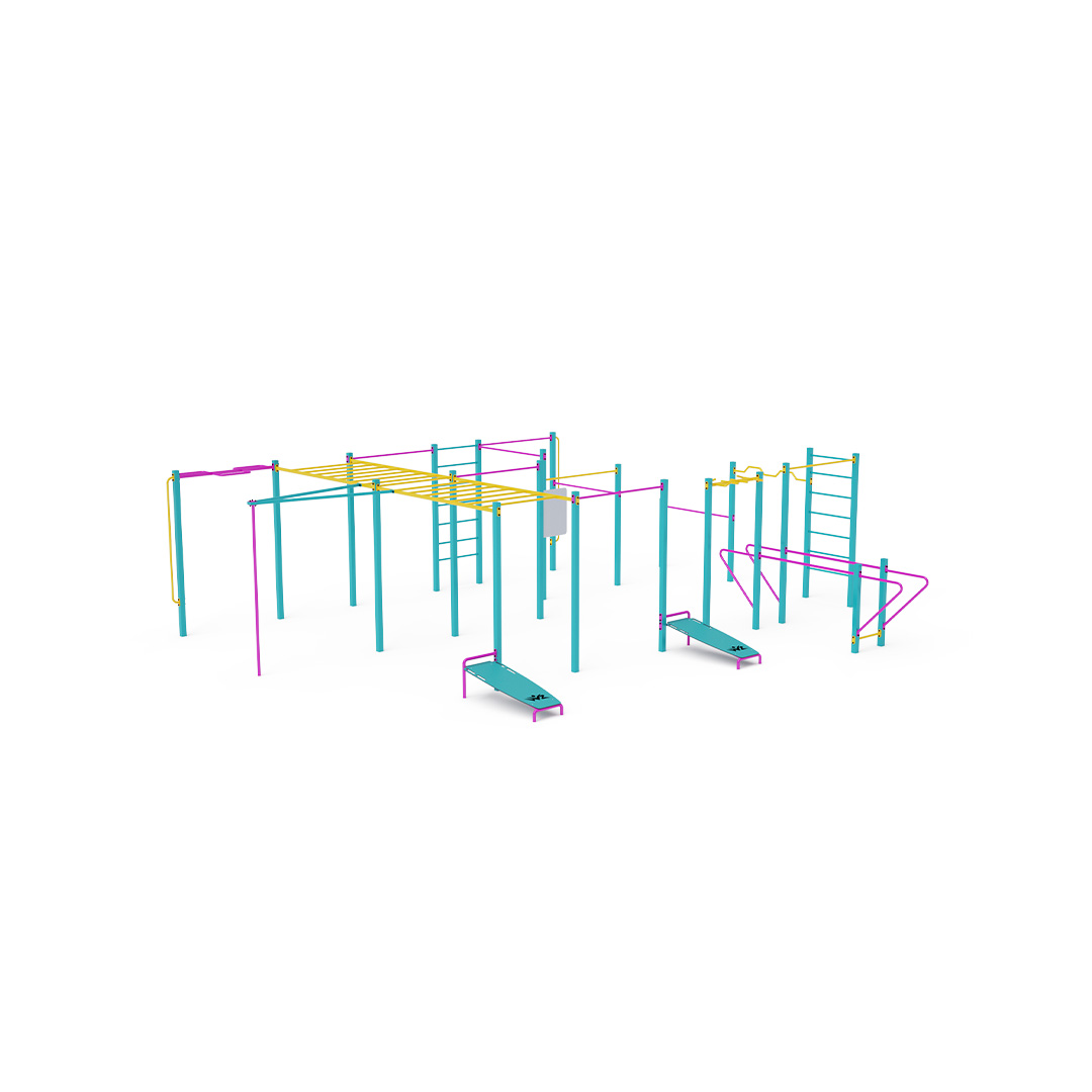Workouts im Freien werden immer beliebter, vor allem durch Übungen mit dem eigenen Körpergewicht. Die frische Luft und die vielfältigen Übungsmöglichkeiten durch die verschiedenen Elemente und Setups sorgen für Abwechslung. Es fördert nicht nur das körperliche, sondern auch das geistige Wohlbefinden. Das umfangreiche Set beinhaltet horizontale Stangen in verschiedenen Höhen, vertikale Stangen, Dip-Barren, horizontale und vertikale Leitern sowie eine gebogene Stange, eine Multi-Grip-Stange, eine mehrteilige Stange, zwei Sit-up-Bänke und eine Pole-Dance-Stange.