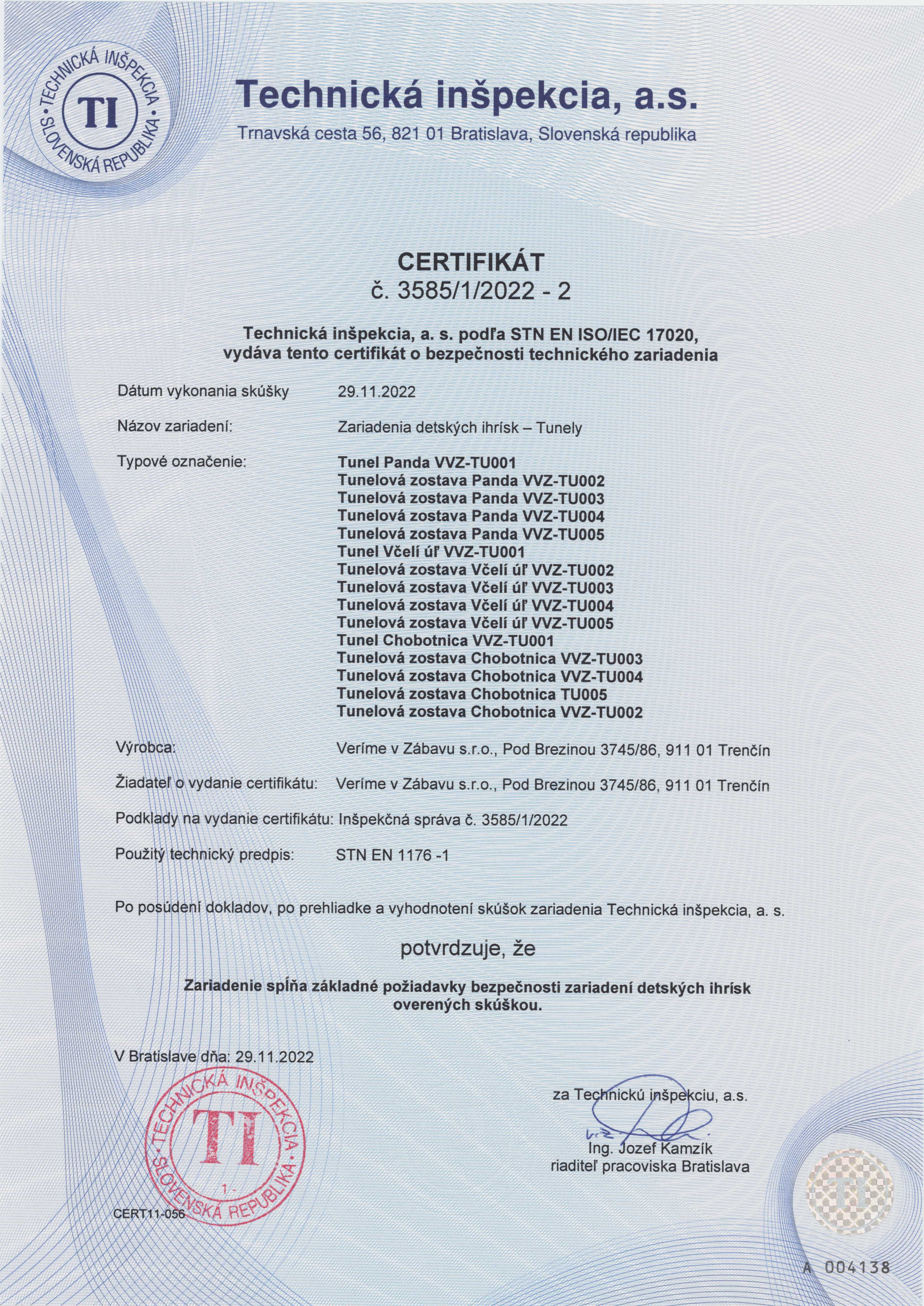 Der Tunnel - Beehive TU001 ist nach der Norm STN EN 1176